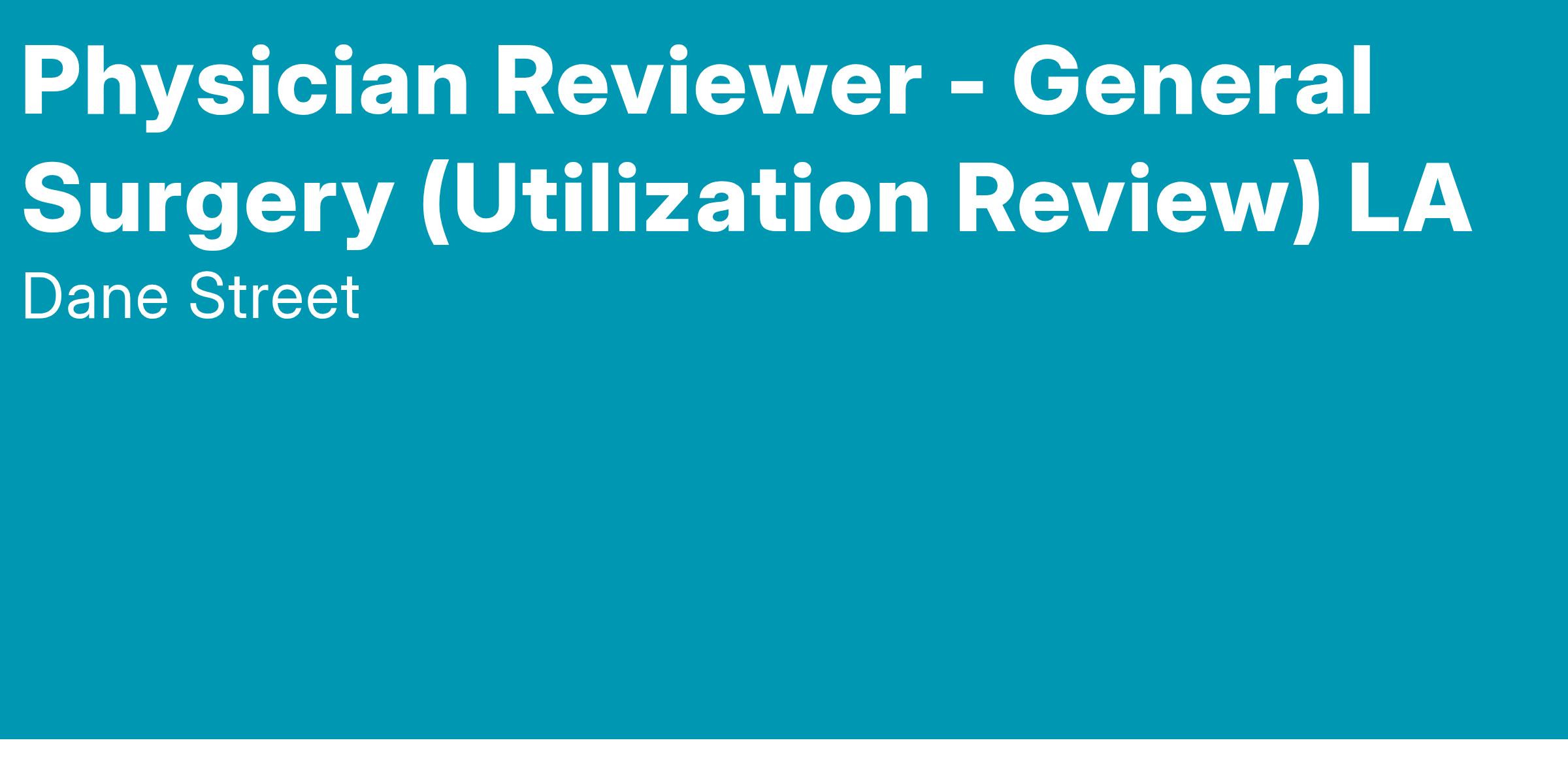 Dane Street, a leading national provider of Utilization Review (UR) and Independent Review Organization (IRO) services, is expanding our panel of physician reviewers. We are seeking Board-Certified General Surgeons with an active Louisiana medical license to conduct independent medical reviews on a flexible, fully remote basis.