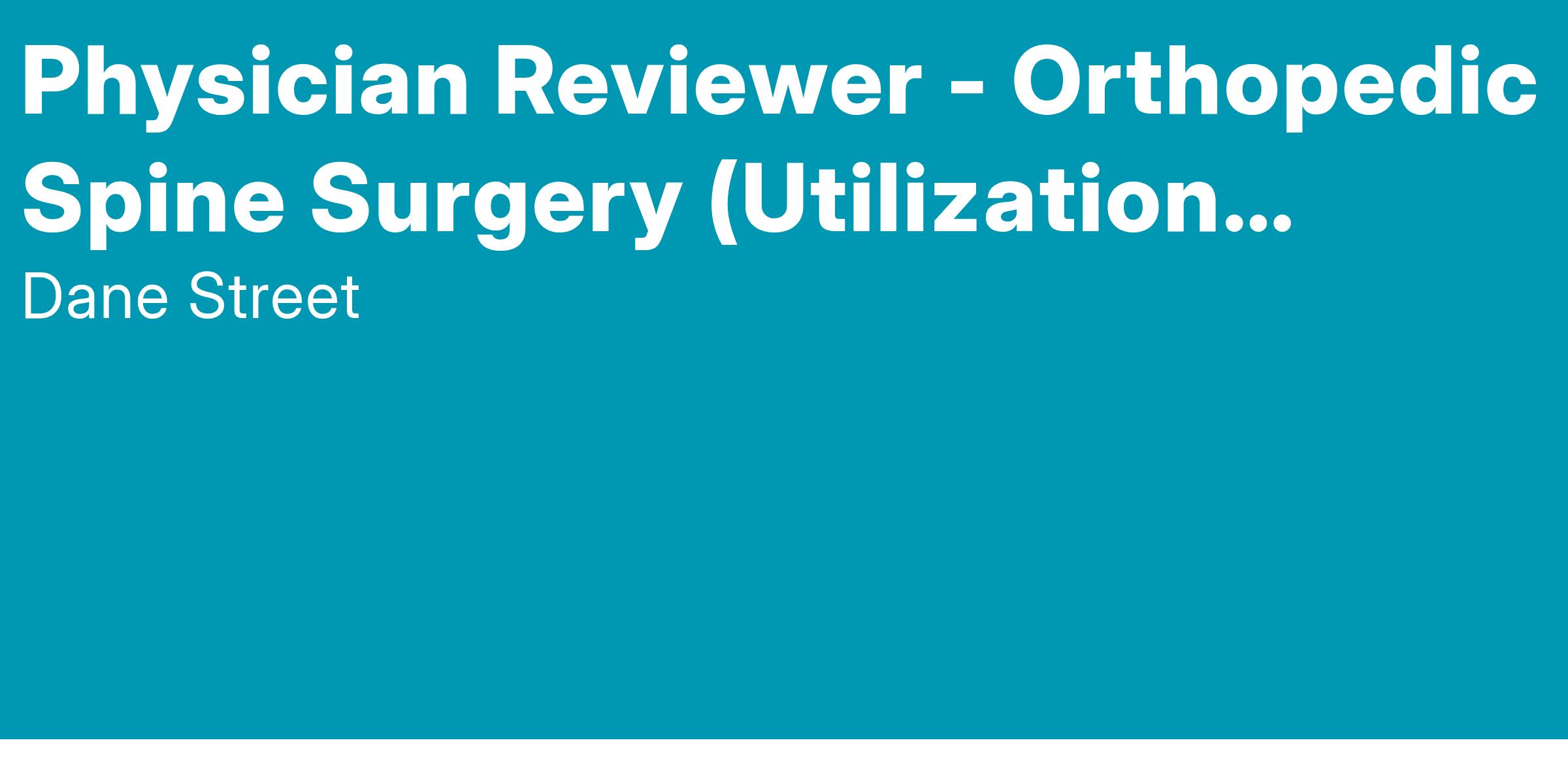 Dane Street, a nationally recognized Independent Review Organization (IRO), is expanding its panel of Physician Reviewers. We are currently seeking Board-Certified Orthopedic Surgeons (Spine experience preferred) licensed in Mississippi to perform Utilization Reviews.