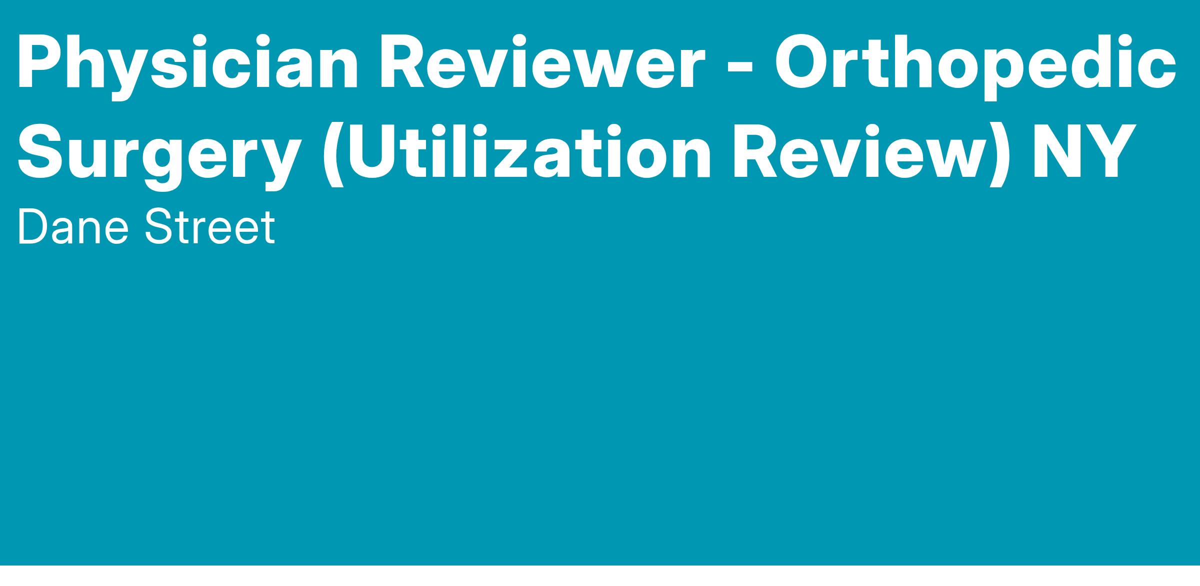 Dane Street, a leading Independent Review Organization (IRO) and national provider of Utilization Review (UR) services, is currently expanding our physician panel. We are seeking Board-Certified Orthopedic Spine Surgeons with an active New York medical license to perform independent medical reviews on a flexible, remote (telework) basis.