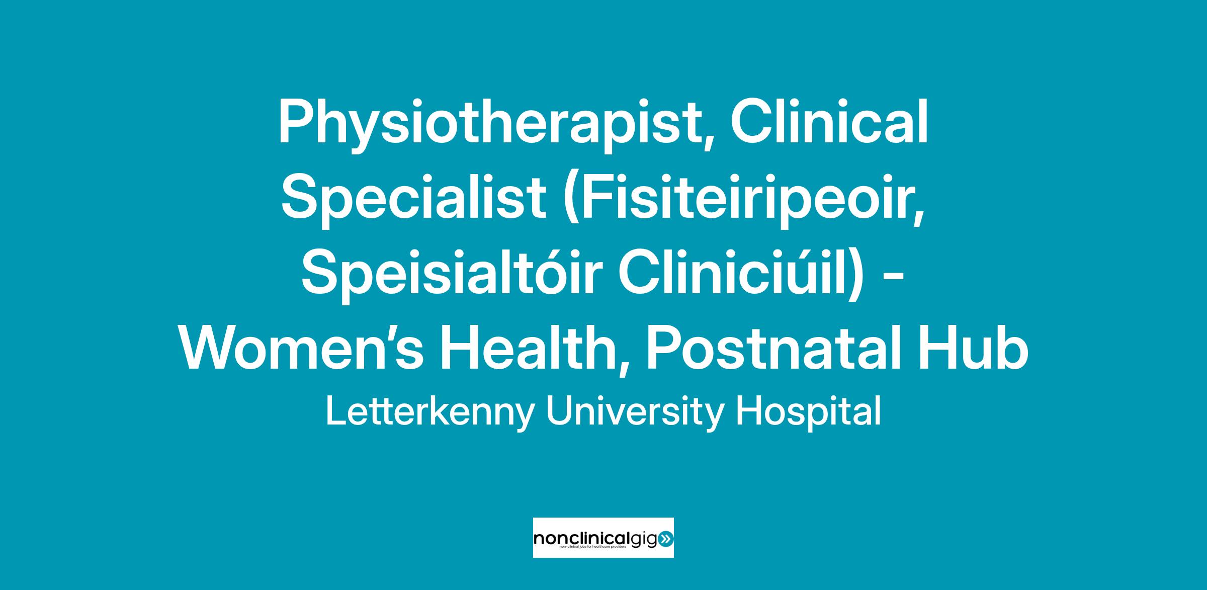 · Work as a Clinical Specialist Physiotherapist within the Postnatal Community Hub service and the associated remit of other services e.g. GP/PHN.