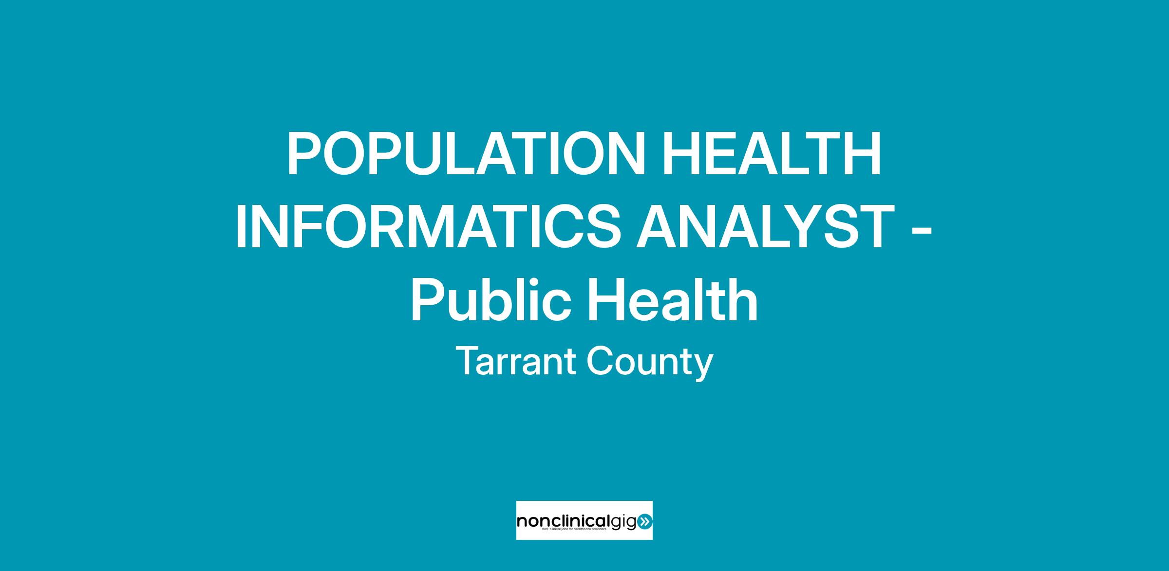 - The Population Health Informatics Analyst (PHIA) works across multiple internal divisions and departments to manage, organize, report, and integrate key public health information sources used in daily public health operations.