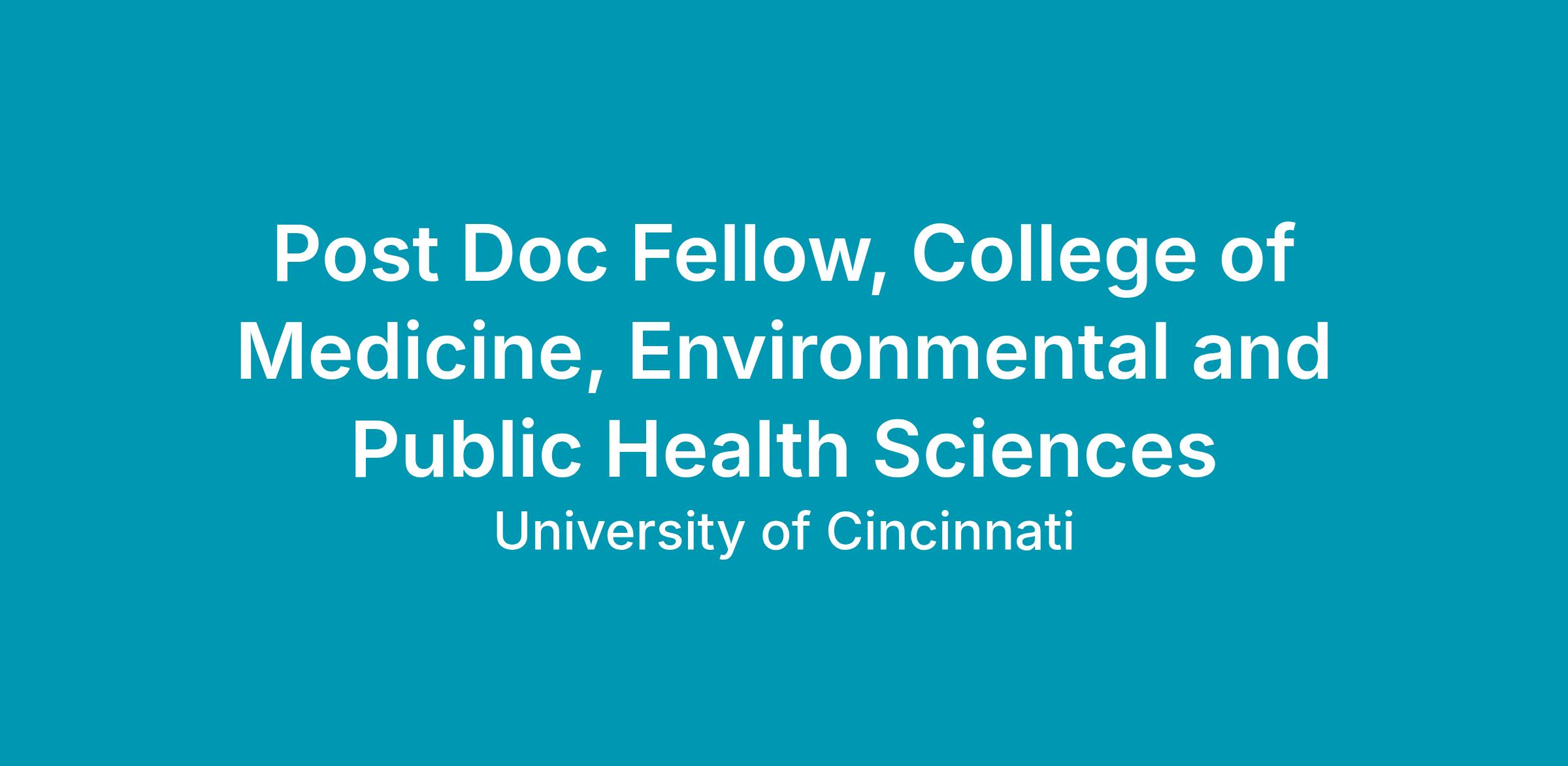 A full-time Post Doc Fellow position is available in the Department of Environmental and Public Health Sciences at the University of Cincinnati College of Medicine.