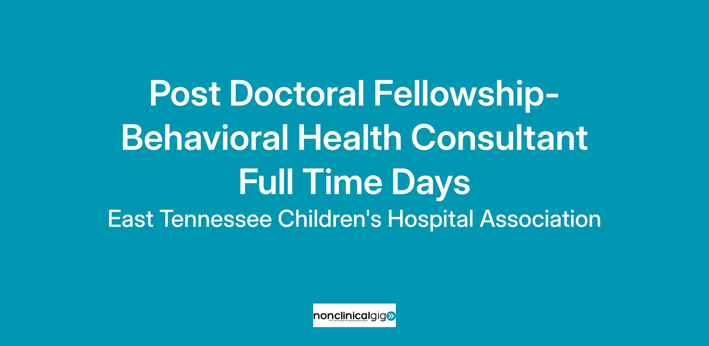 East Tennessee Children’s Hospital (ETCH) offers a 12-month, full-time Pediatric Integrated Behavioral Health Postdoctoral Fellowship. This fellowship is designed to gain expertise treating children and families within a PCBH model of integrated care. This unique postdoctoral fellowship will take place in ETCH’s outpatient primary care clinics. Fellows will have the opportunity to work within a multidisciplinary team at a primary care clinic and within the larger organization.