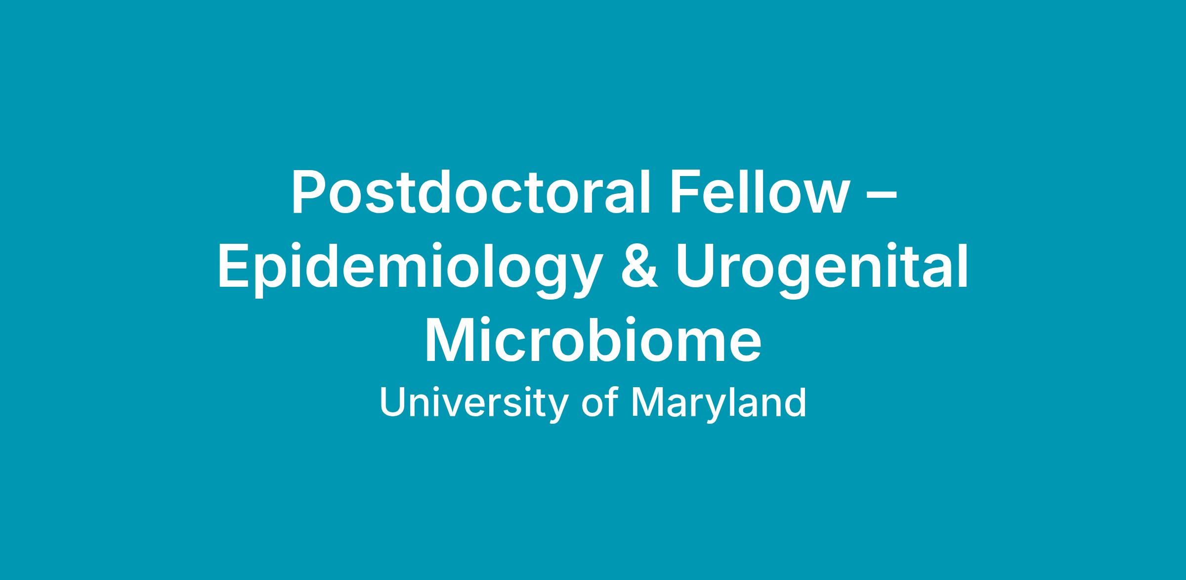 Postdoctoral Fellow – Epidemiology & Urogenital Microbiome