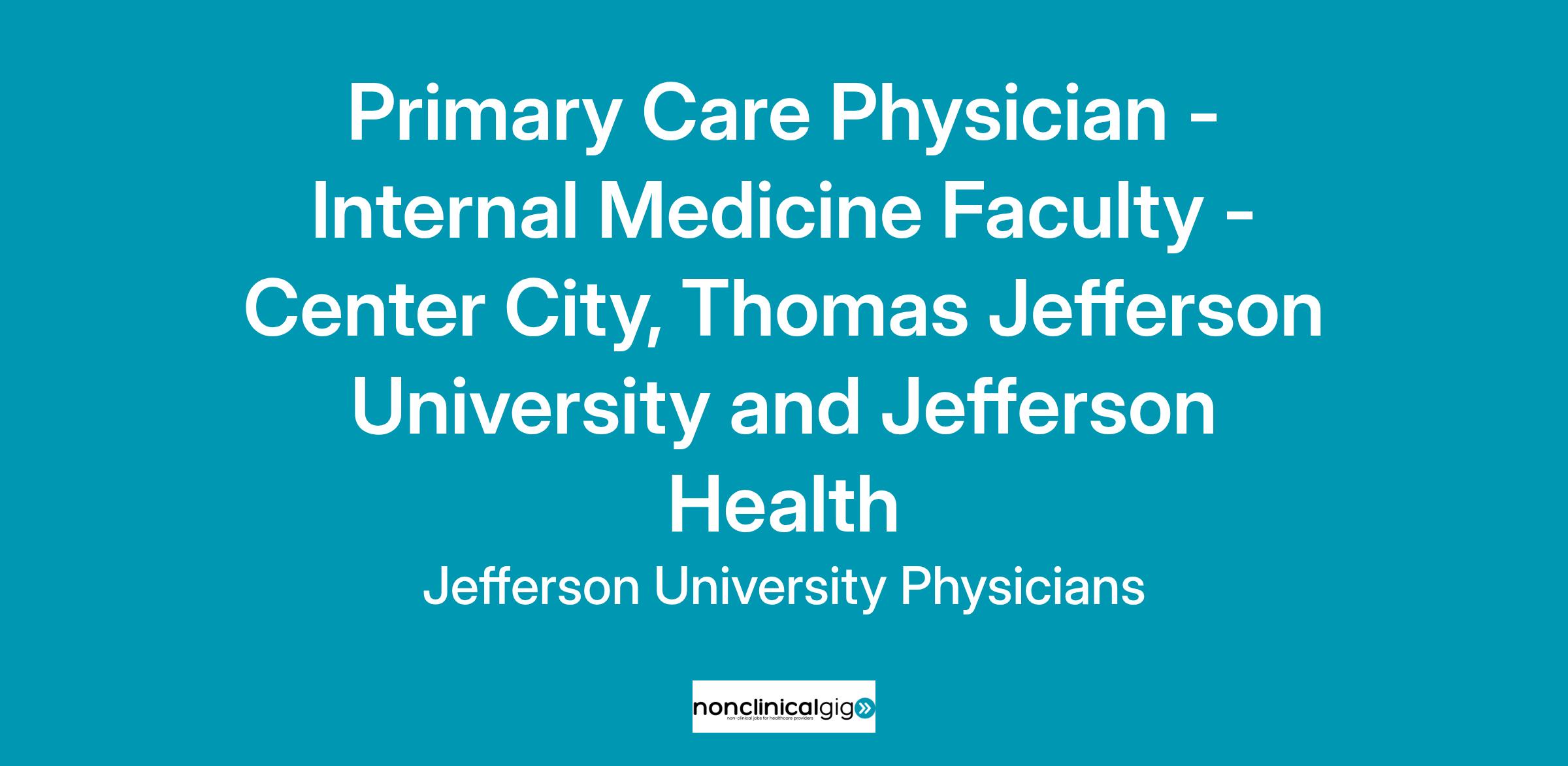 Jefferson is building a world-class primary care group with EPIC EMR and high quality Team-based care. The Division of Internal Medicine is seeking applications for a full-time provider in the expanding team. Join us to take Primary Care to where it should be!