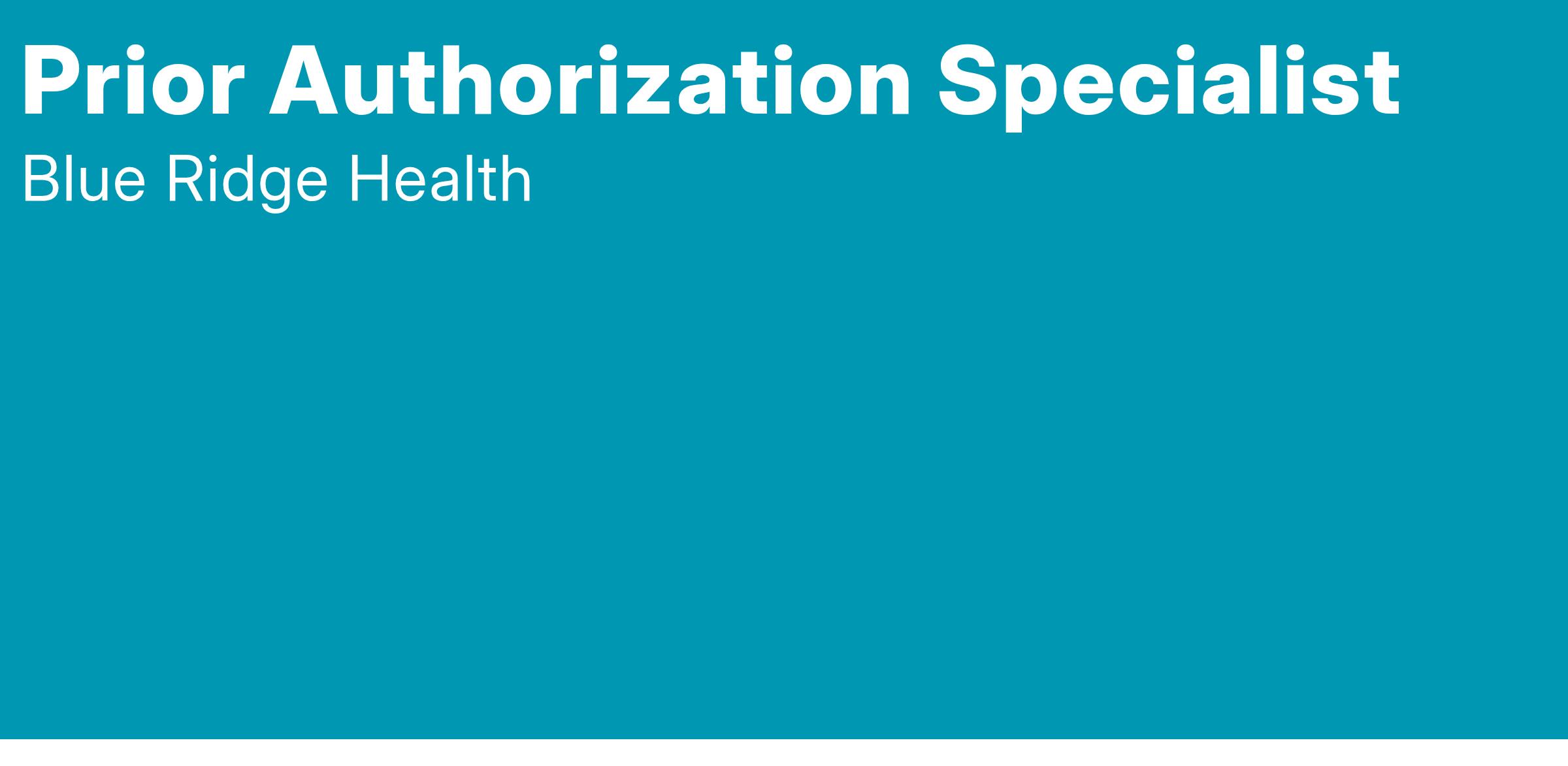 Blue Ridge Health is currently seeking a Prior Authorization Specialist to be part of our Medical Team.
