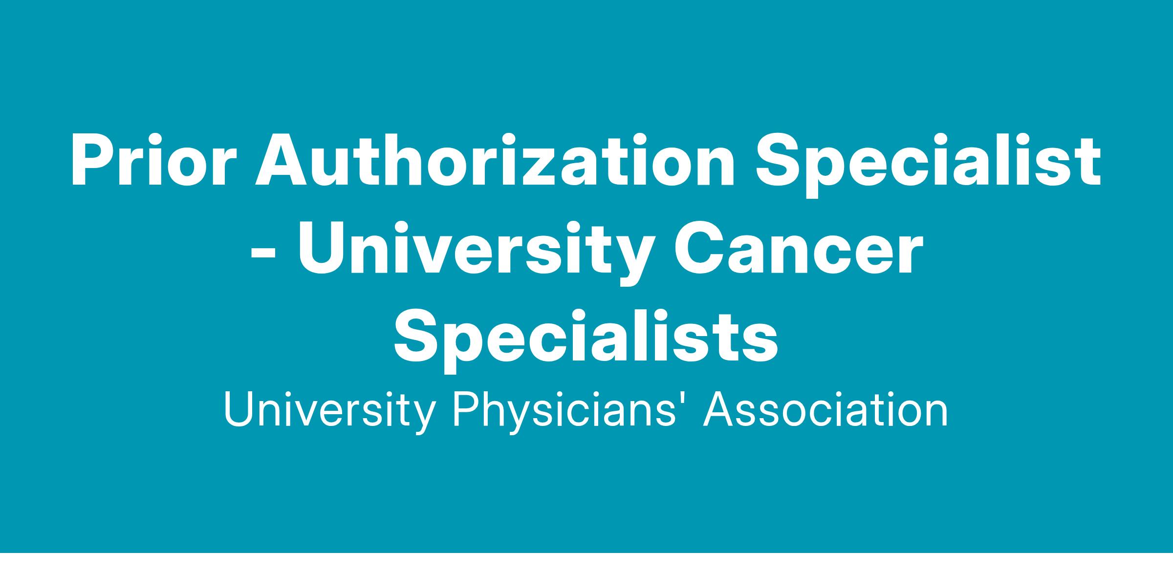 University Physicians' Association is looking for a full-time Prior Authorization Specialist at University Cancer Specialists, a large medical oncology group within the University of Tennessee Medical Center. Our main campus location consists of 21 providers and is located at the UT Cancer Center within UT Hospital.