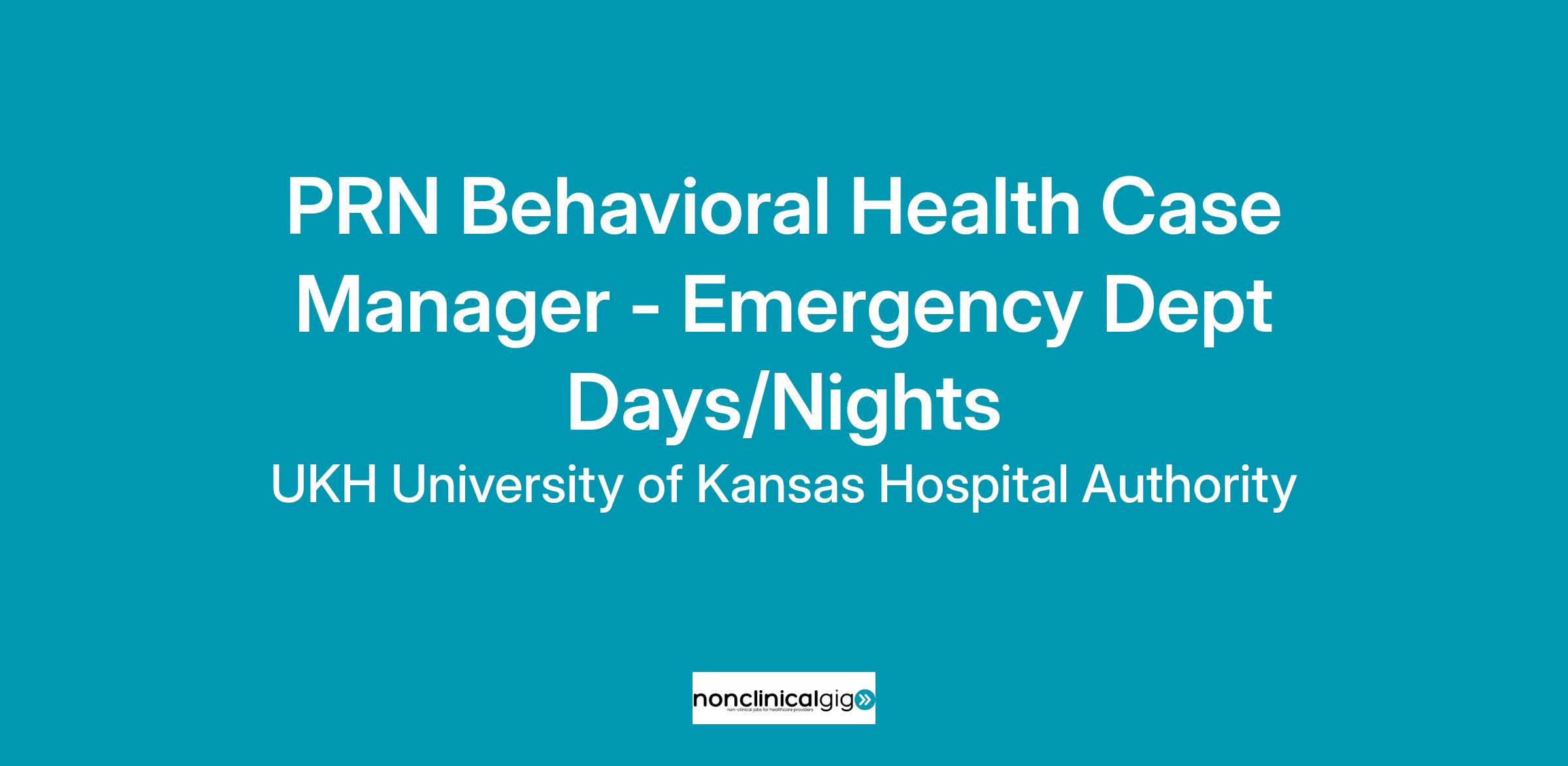 PRN Behavioral Health Case Manager - Emergency Dept Days/Nights