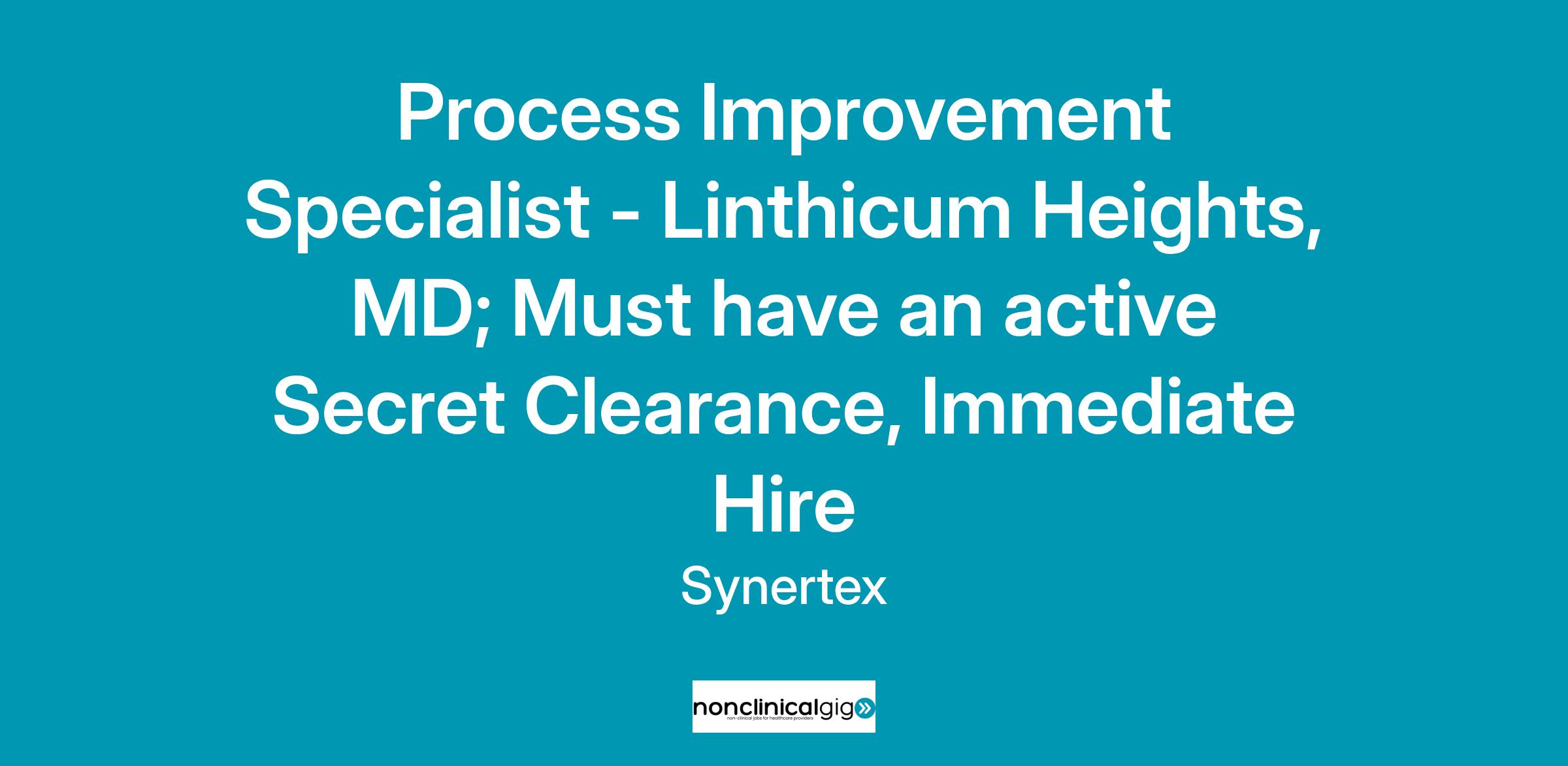 Synertex is looking to hire a Process Improvement Specialist in support of the Defense Counterintelligence and Security Agency's Training Directorate in Linthicum Heights, MD.