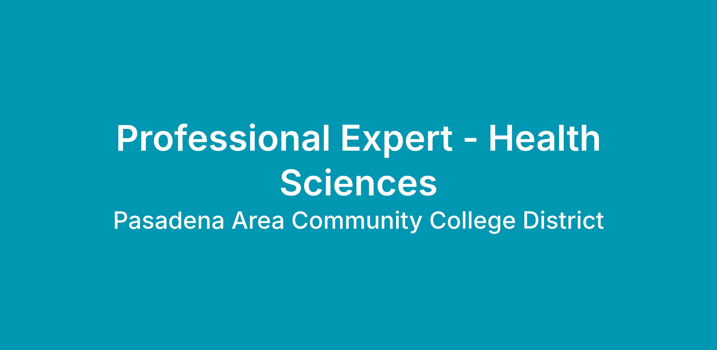 Health Sciences Division at Pasadena City College is hiring 3 Professional Experts to support the needs of laboratory classes offered by the Nursing and Allied Health Programs.