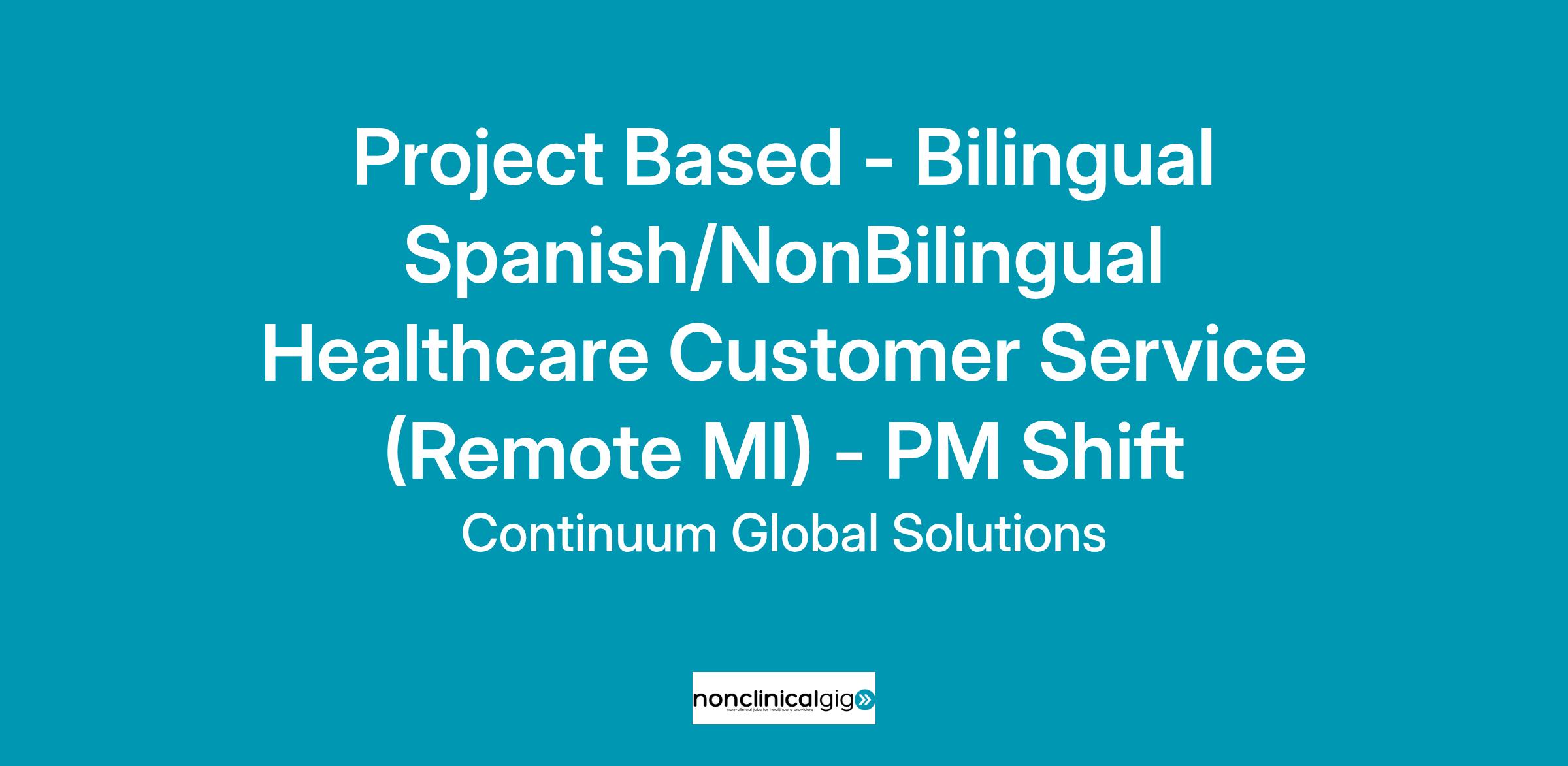 Project Based - Bilingual Spanish/NonBilingual Healthcare Customer Service (Remote MI) - PM Shift