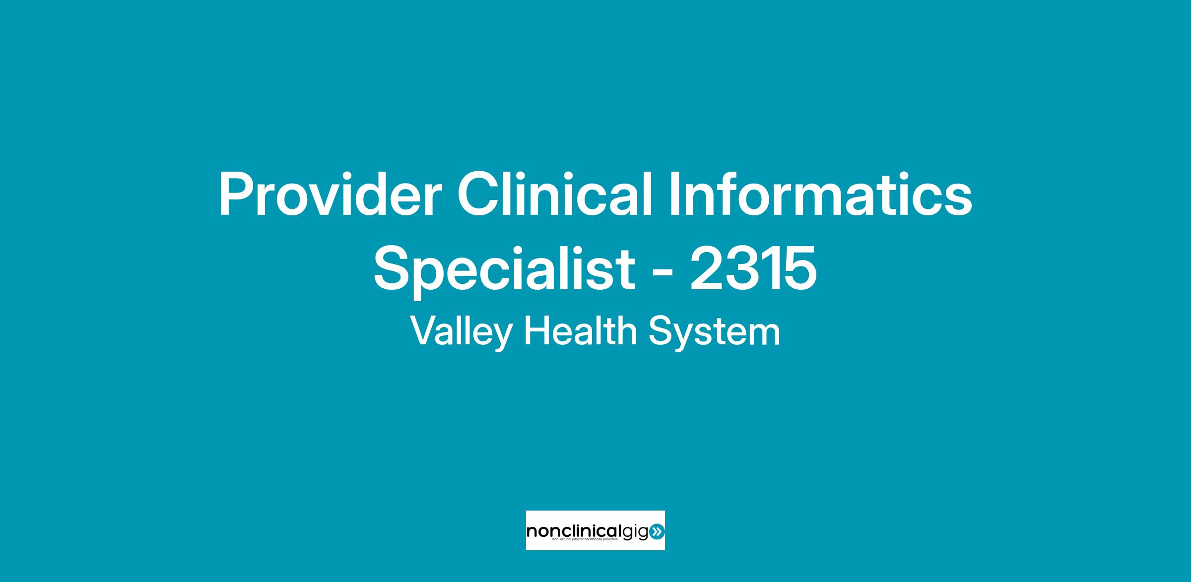 808Working under the direction of the Clinical Informatics Manager / Chief Medical Information Officer, the Provider Clinical Informatics Specialist is responsible for engaging the teams in learning and optimizing the utilization of EMR to support the delivery of excellent quality care. The Provider Clinical Informatics Specialist will serve as subject matter expert and advisor to VHS leadership on informatics strategy related to efficiency, quality, and productivity. It is expected that all work will reinforce and provide credibility with peers. Assigned outreach will remain the same in each role the employee holds.