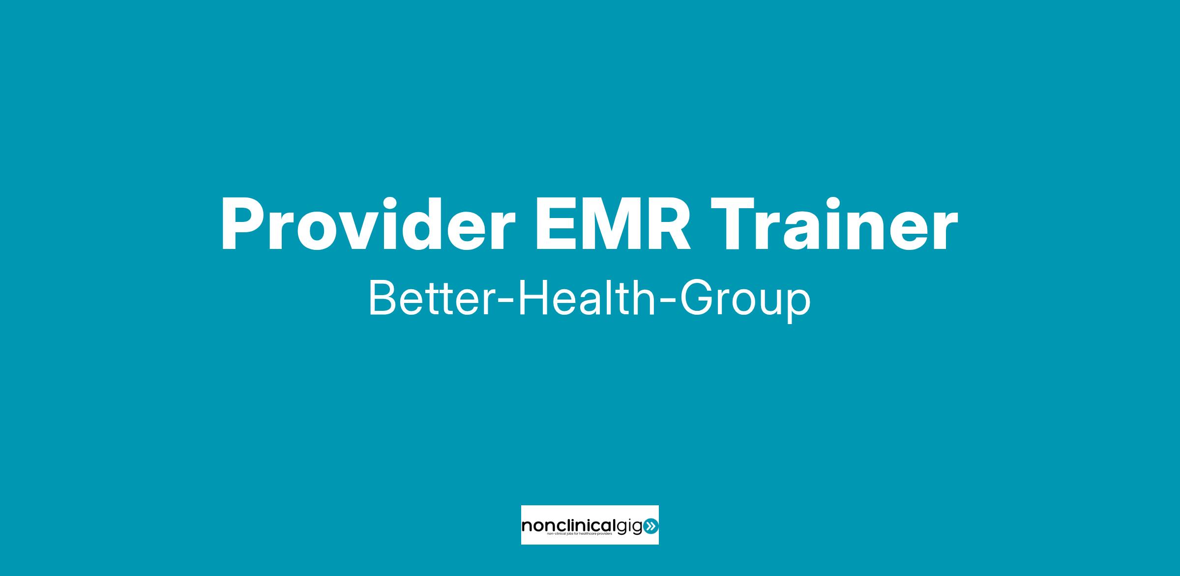 The EMR Trainer is an operational role, acting as a representative and advocate in the design, development, implementation, and adoption of the electronic medical records (EMR) and other patient care systems. The incumbent will ensure providers are trained on the EMR System and other patient care systems.