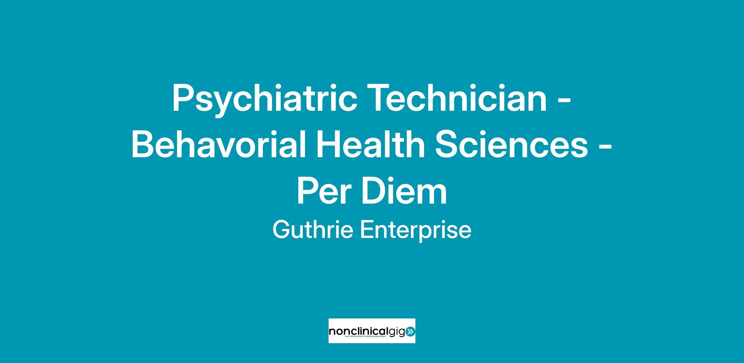 The Psychiatric Technician in Behavioral Health provides direct patient care and the support functions under supervision of Registered Professional Nurse or Licensed Mental Health Worker. This position works as a member of the multidisciplinary Behavioral Health team. Participation in group and therapeutic activities is required. The Psychiatric Technician supports the philosophy of Robert Packer Hospital, The Nursing Division and The Behavioral Health Unit. This position represents the hospital in a professional, courteous manner to patients/families and healthcare team while being sensitive to how others perceive both verbal and non‐verbal communication.
