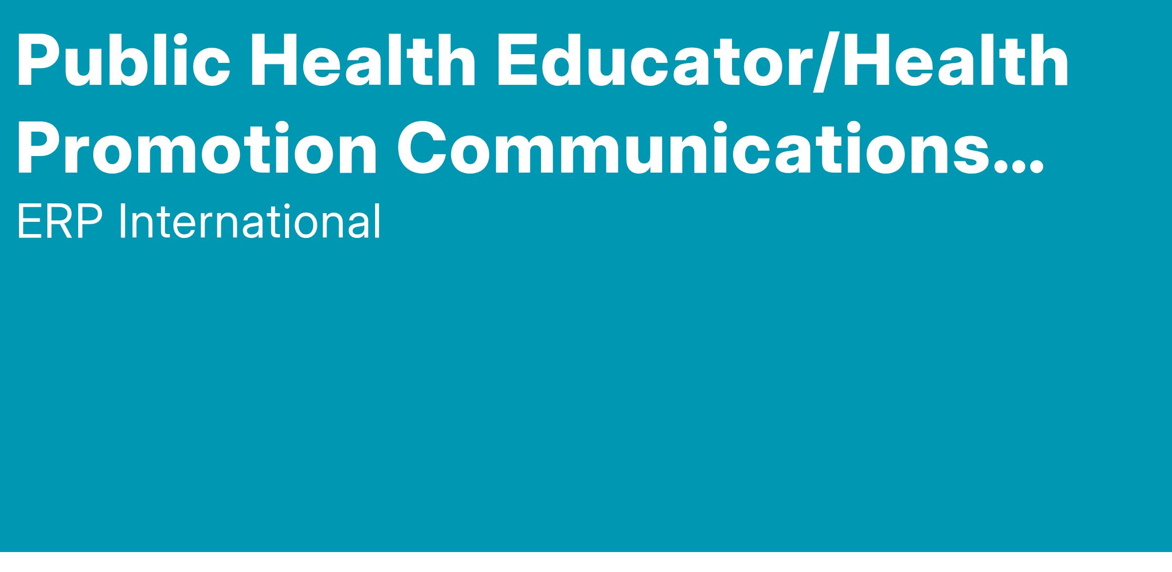 ERP International, LLC is seeking a Public Health Educator/Health Promotion Communications Expert for a full-time position in the Health Promotion and Wellness Clinic supporting Naval Hospital Camp Pendleton, CA.
