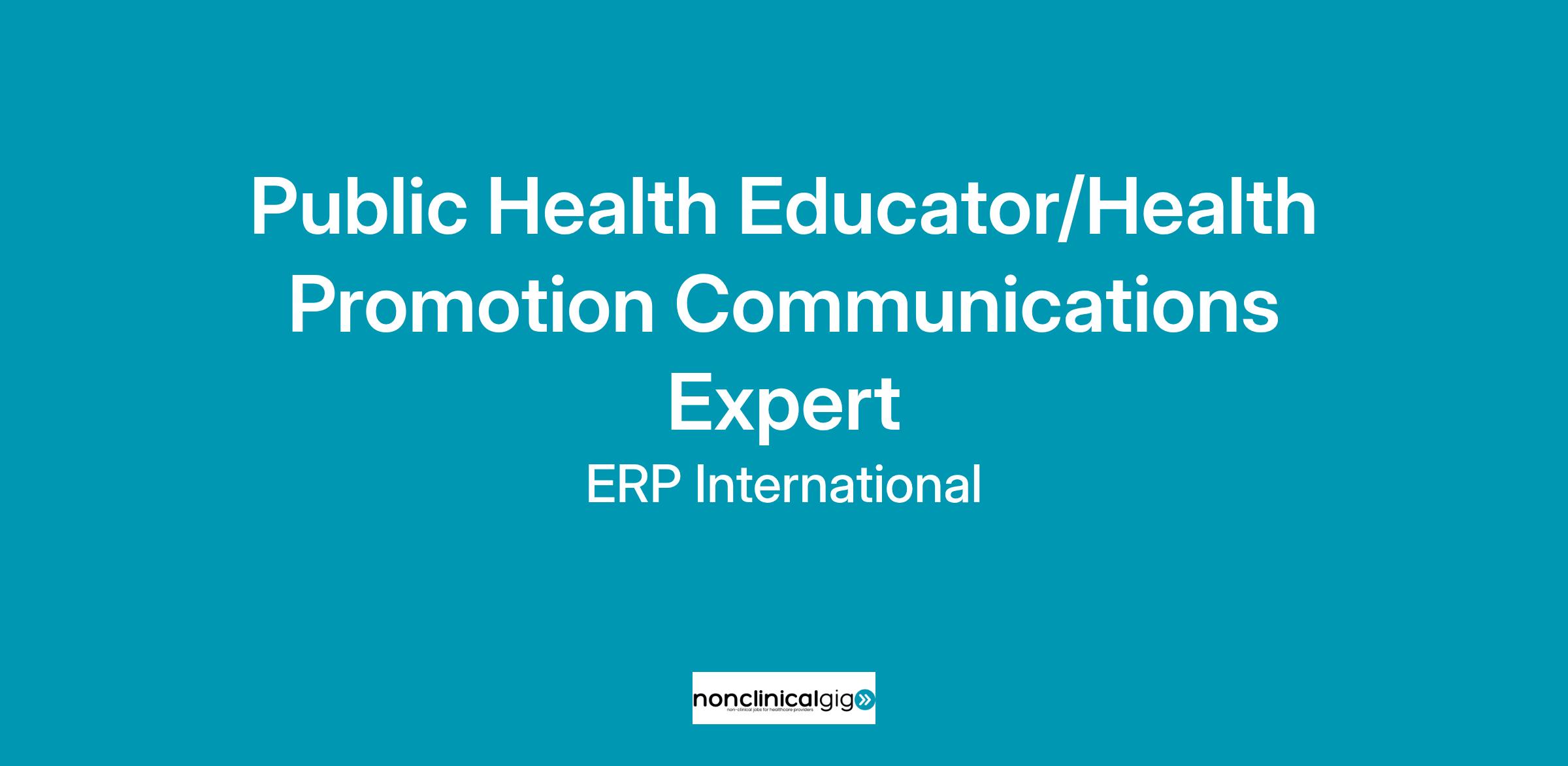 ERP International, LLC is seeking a Public Health Educator/Health Promotion Communications Expert for a full-time position in the Health Promotion and Wellness Clinic supporting Naval Hospital Camp Pendleton, CA.