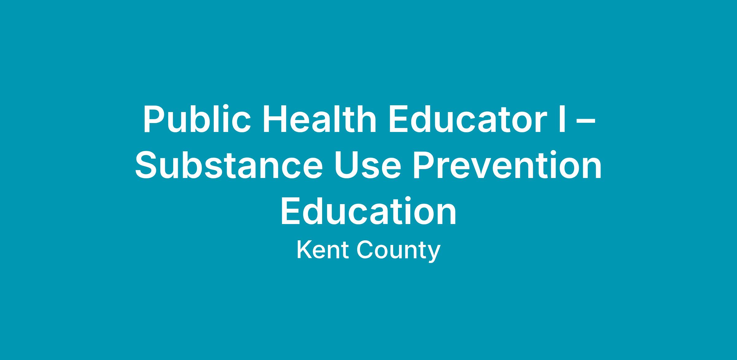 The Kent County Health Department invites applications for the position of Public Health Educator I – Substance Use Prevention Education.