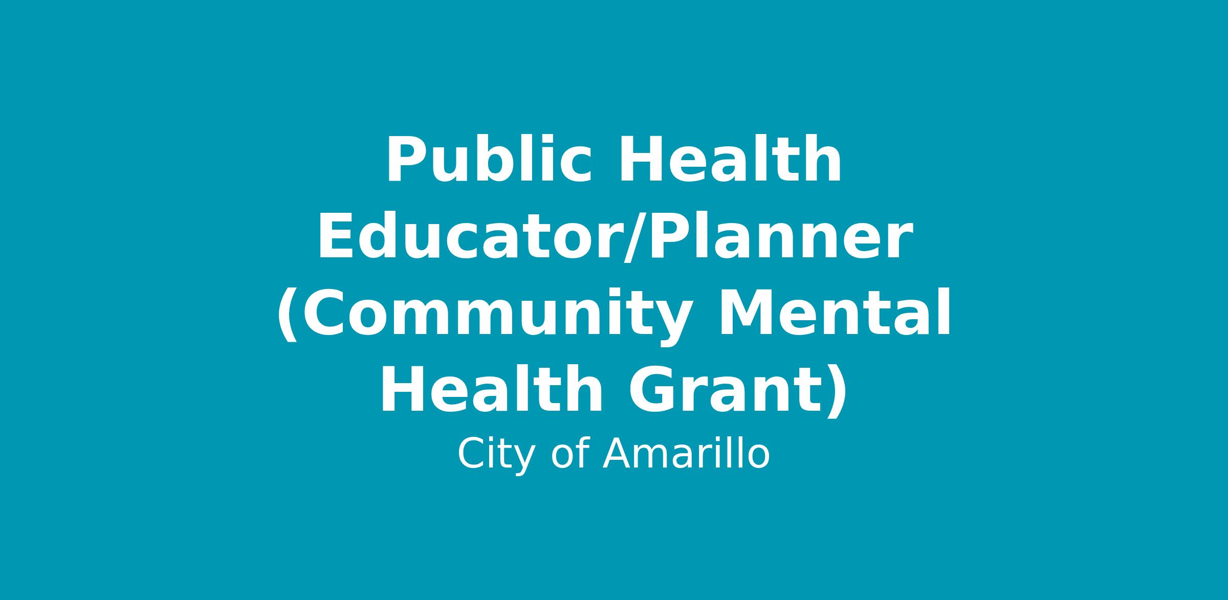 JOB TITLE: Public Health Educator/Planner (Community Mental Health Grant)