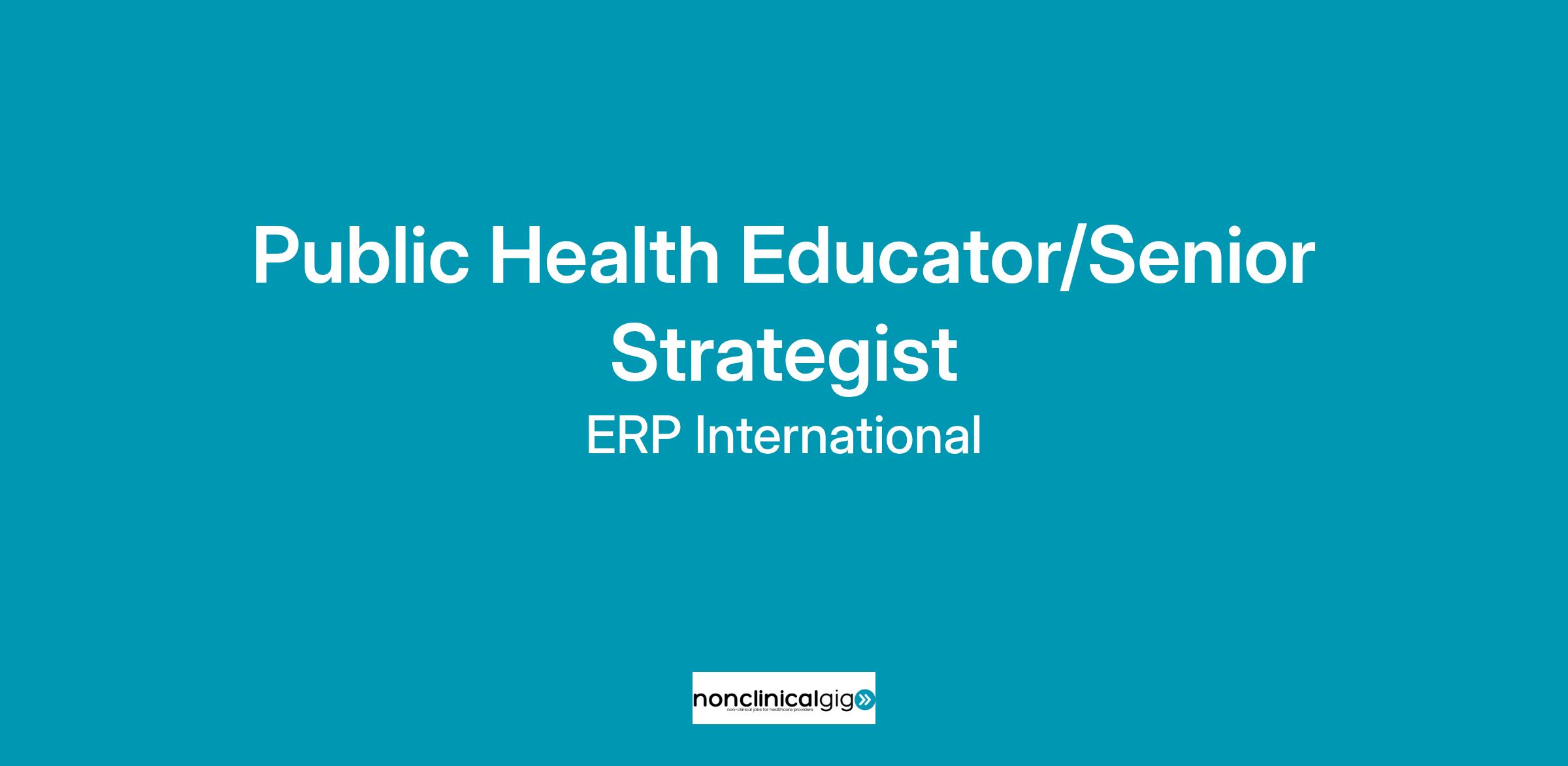 ERP International, LLC is seeking a Public Health Educator/Senior Strategist for a full-time position in the Health Promotion and Wellness Clinic supporting Naval Hospital Camp Pendleton, CA.
