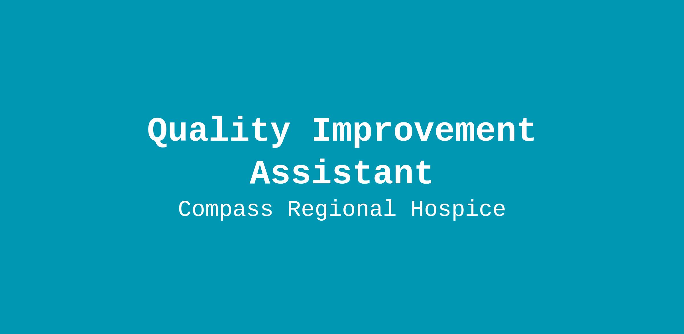 Position Summary: The Quality Improvement Assistant provides support to the Quality & Compliance Manager in all areas of the Compass Regional Hospice (Compass) Quality Assessment and Performance Improvement (QAPI) program. This position plays a key role in ensuring that quality and compliance standards are upheld throughout the organization.