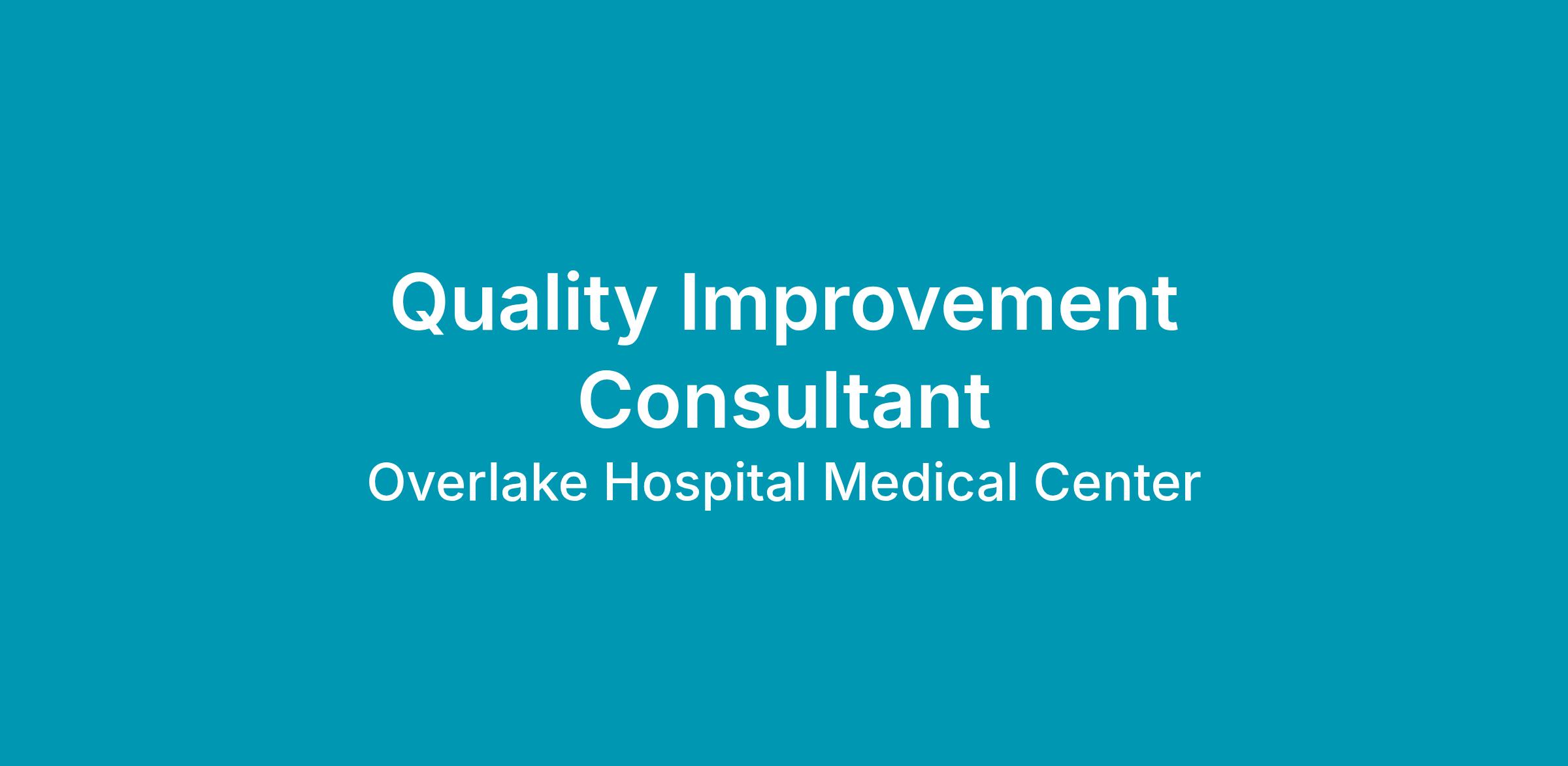 Salary$85,509.00 - $128,274.00Overlake Medical Center and Clinics has a current opening for a full time Quality Improvement Consultant, to join our collegial, collaborative and supportive team of dynamic individuals.