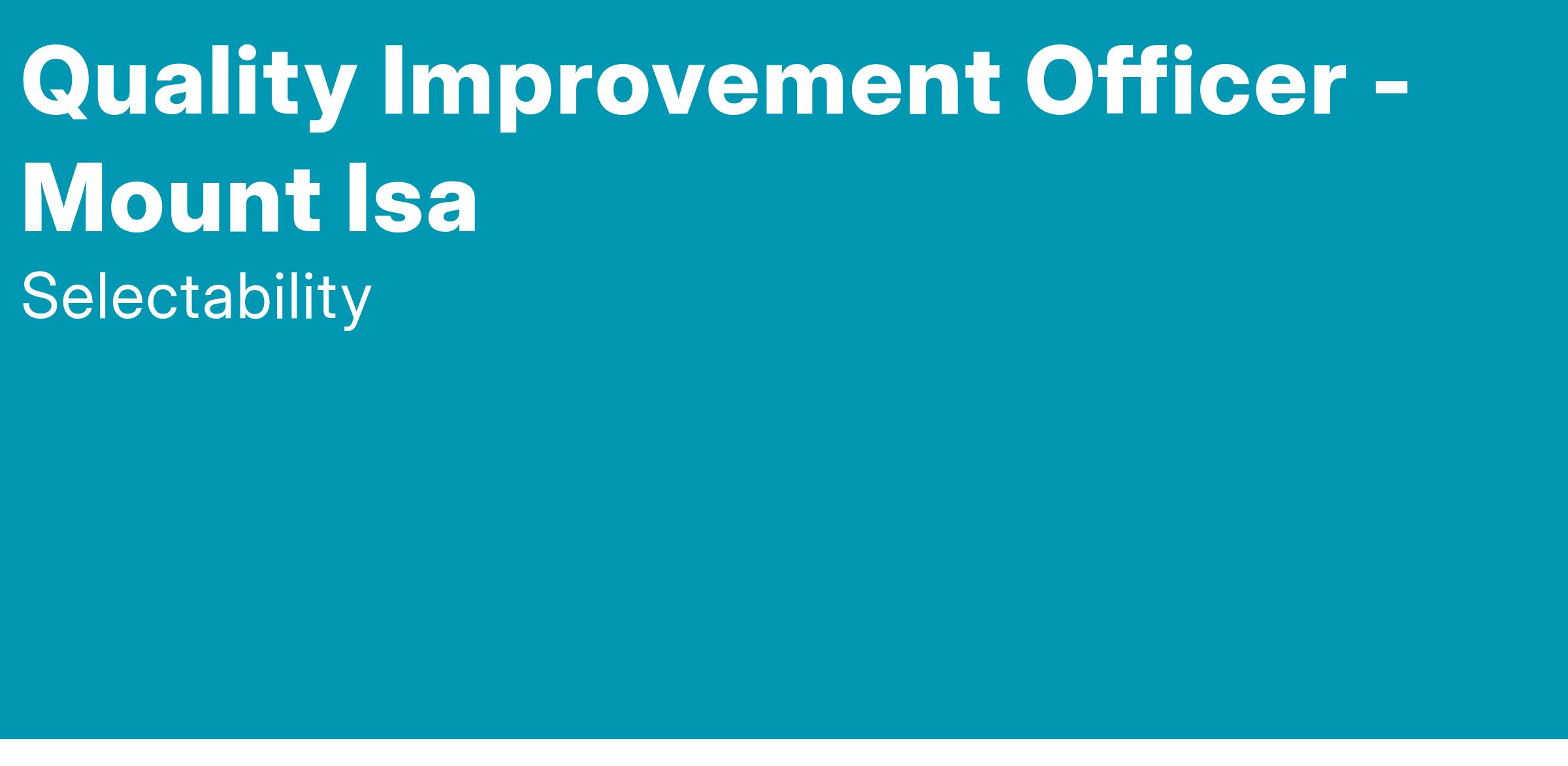 selectability has a growing team who are working together to continuously improve the quality of our care delivery. We are currently recruiting for an experienced Quality Improvement Officer to join this team. This role champions quality management practices associated with delivery of care to our recipients, providing support and advice to operational teams. This is a full-time position based in Mount Isa.