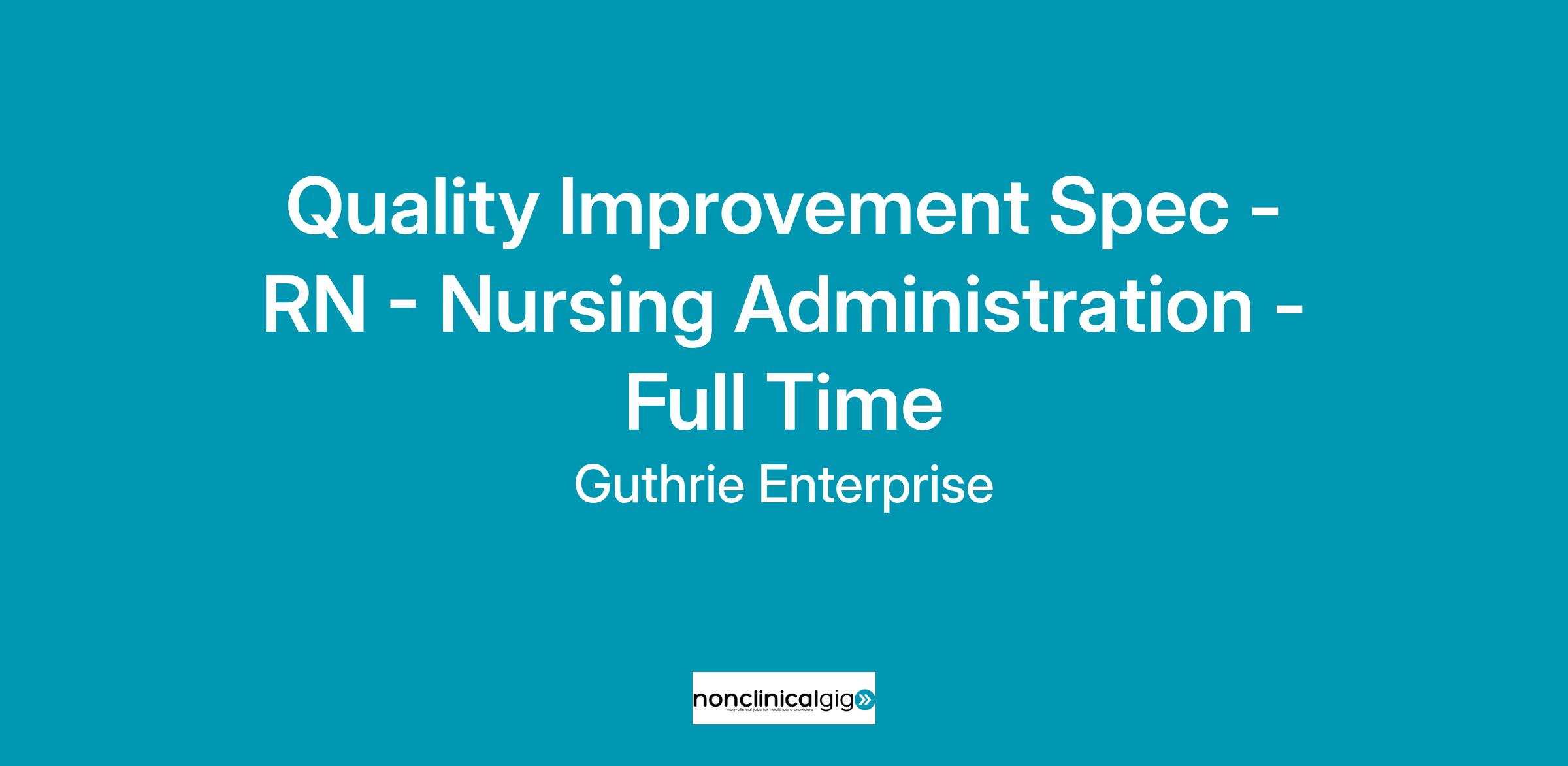 The Quality Improvement Specialist-Registered Nurse (QIS-RN) supports the administration of The Guthrie Clinic's Nursing Quality Programs, supporting its quality-of-care improvements and patient safety activities, the QIS-RN serves as a facilitator, advisor and advocate to patients, providers, and the community. In supporting TGC's quality of care improvement activities, the position provides support through the coordination of collection, compilation, and aggregation of data. This position also provides project management services for the implementation and training of new systems, mining of new and existing systems and processes for actionable data, environment of care & infection prevention floor audits, and acting where appropriate.