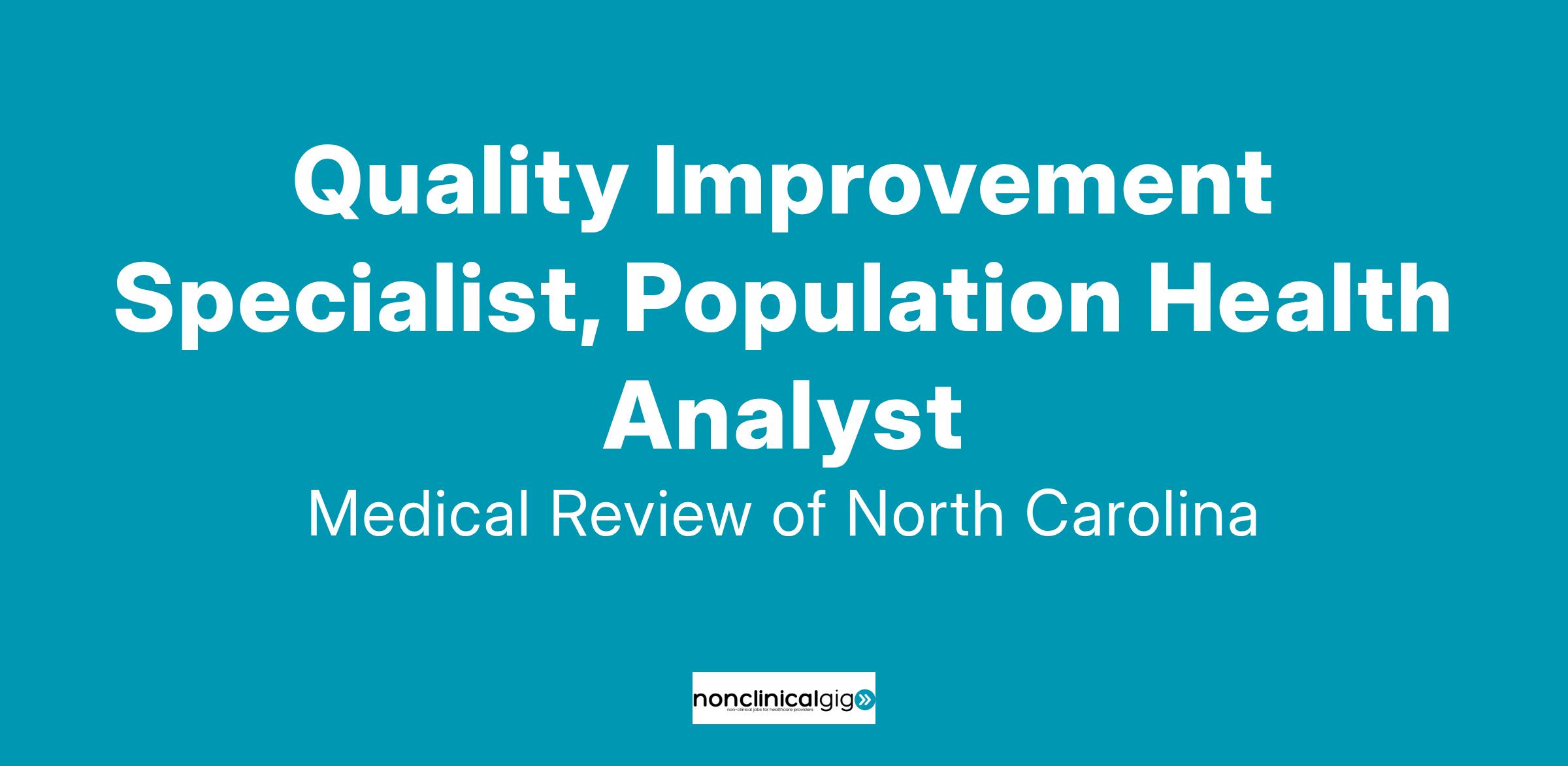 Quality Improvement Specialist, Population Health Analyst