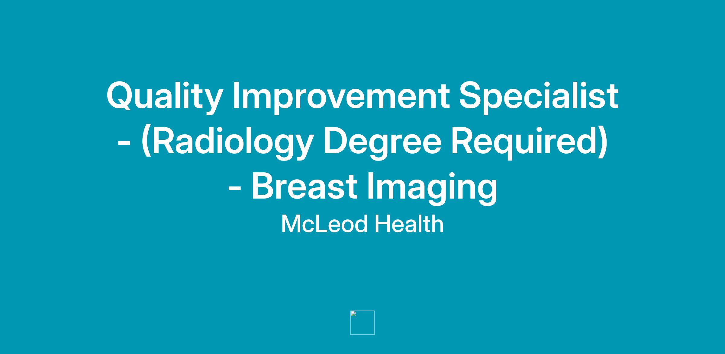 Job Summary: The Quality Assurance Specialist (QAS) for Breast Imaging will have oversight of all regulatory compliance issues, including all aspects of the Mammography Quality Standards for McLeod Hospital Systems. The QAS will be responsible for coordination of tasks and documentation for Quality Assurance. The QAS ensures the department consistently produces high quality mammographic exams and procedures to aide in medical diagnosis, treatment, and prevention of disease.