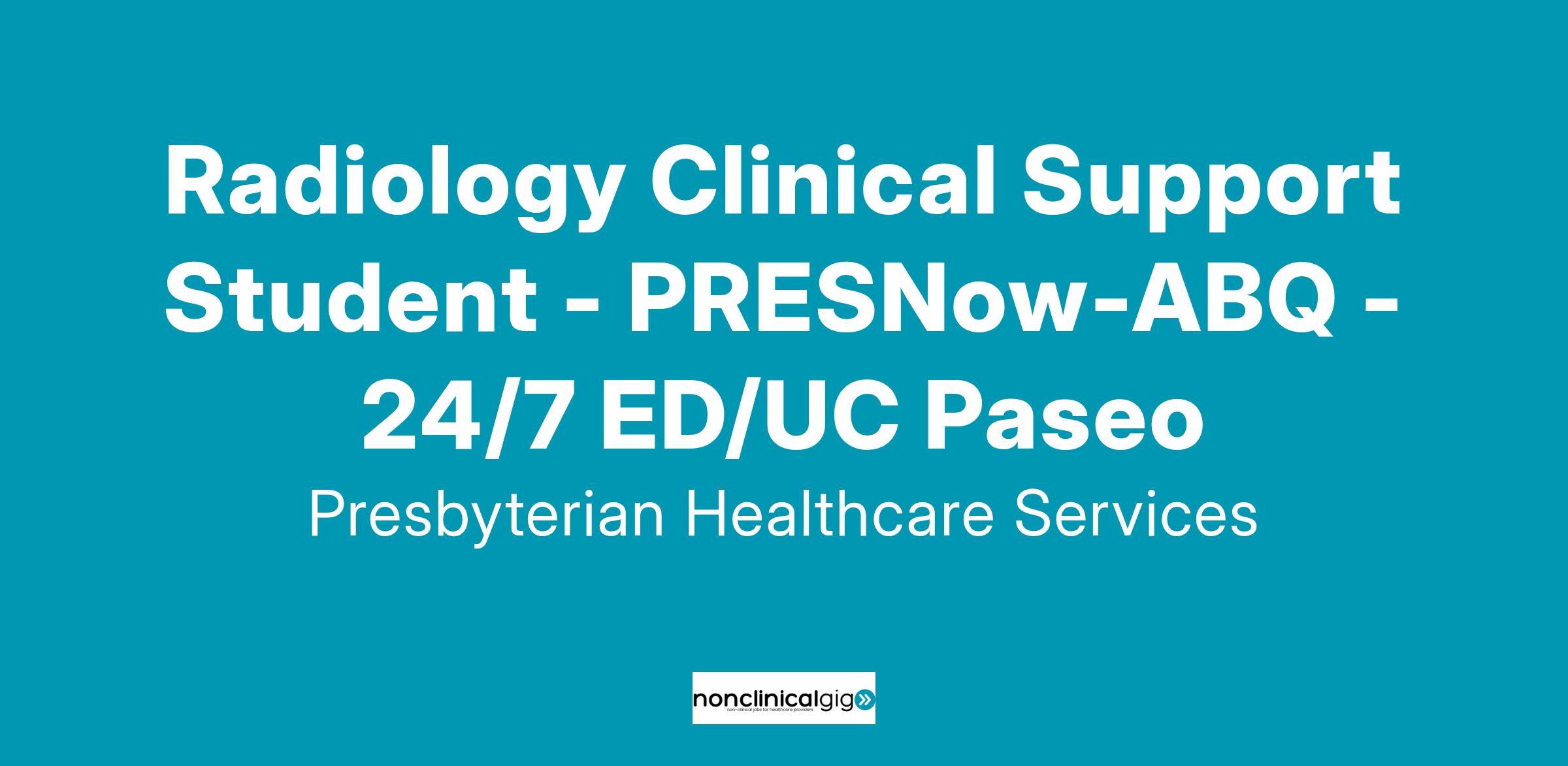 The Paseo location of PRESNow is seeking a Radiology Clinical Support Student.