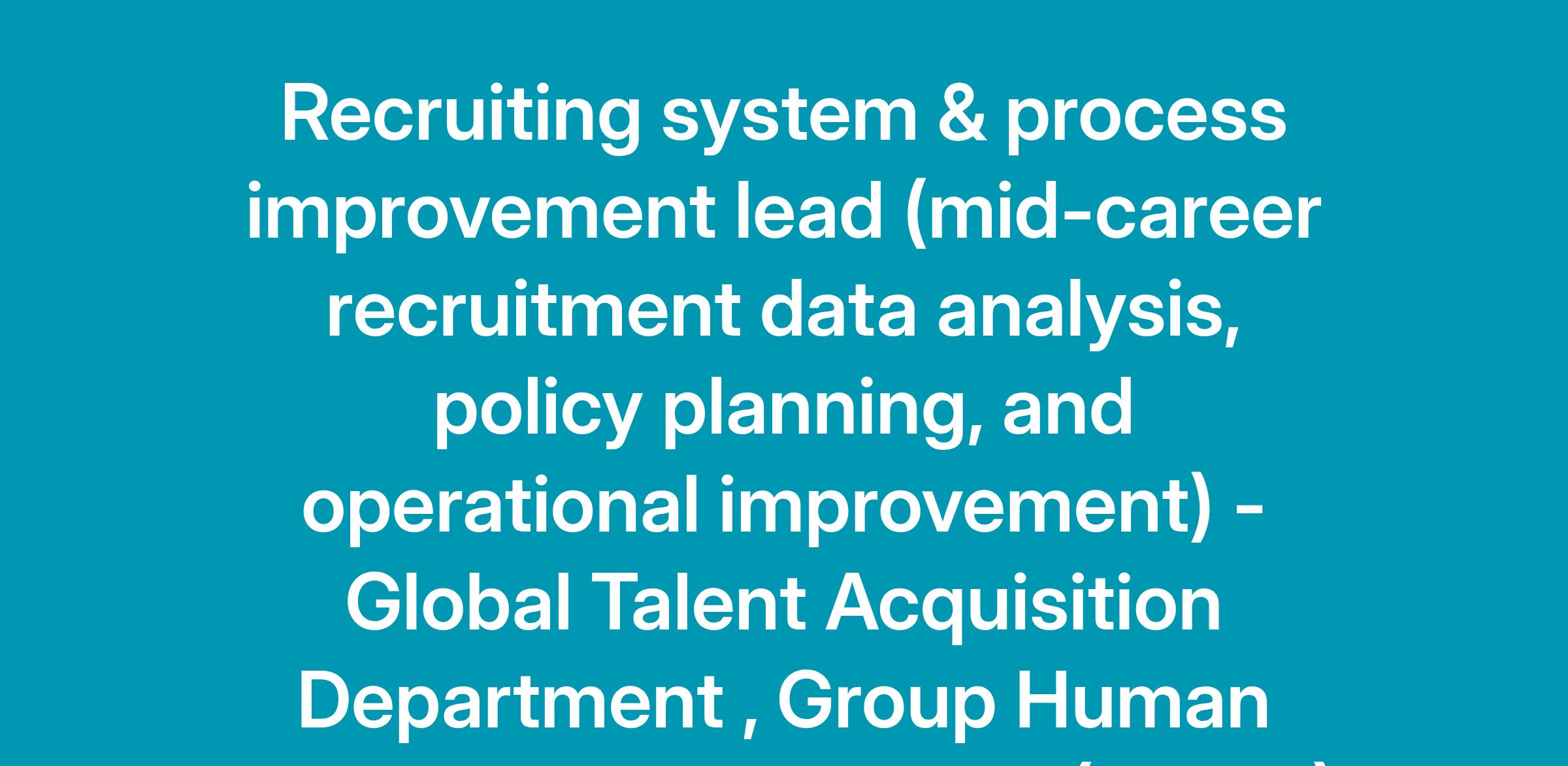 This position will be assigned to the Process Management Group within the Recruitment Planning Section of the Global Talent Acquisition Department, which is responsible for recruitment across the entire Rakuten Group, Inc.