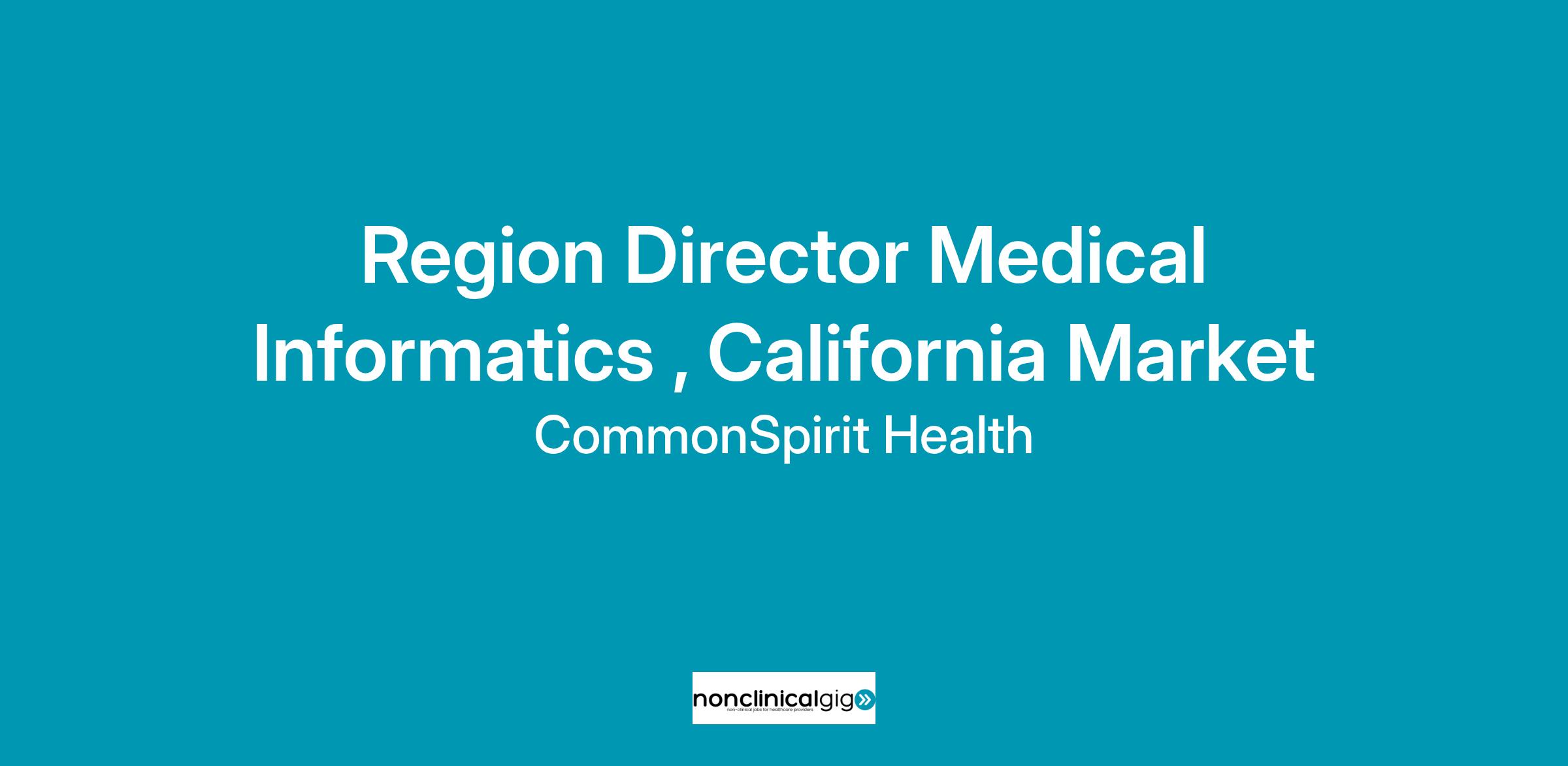 This region director level role will be responsible for project management and exercise strategic and visionary thinking having long-term organization-wide application and impact; develop and implement programs critical to CommonSpirit Health; and exercise control and supervision of assigned functions and multiple resources that comprise the Medical Informatics service line essential in the organization and its customers. This role will directly partner with clinical informatics, IT, and regional clinicians to ensure the highest standard in electronic health record deployment, optimization strategy, and clinical workflow standardization.