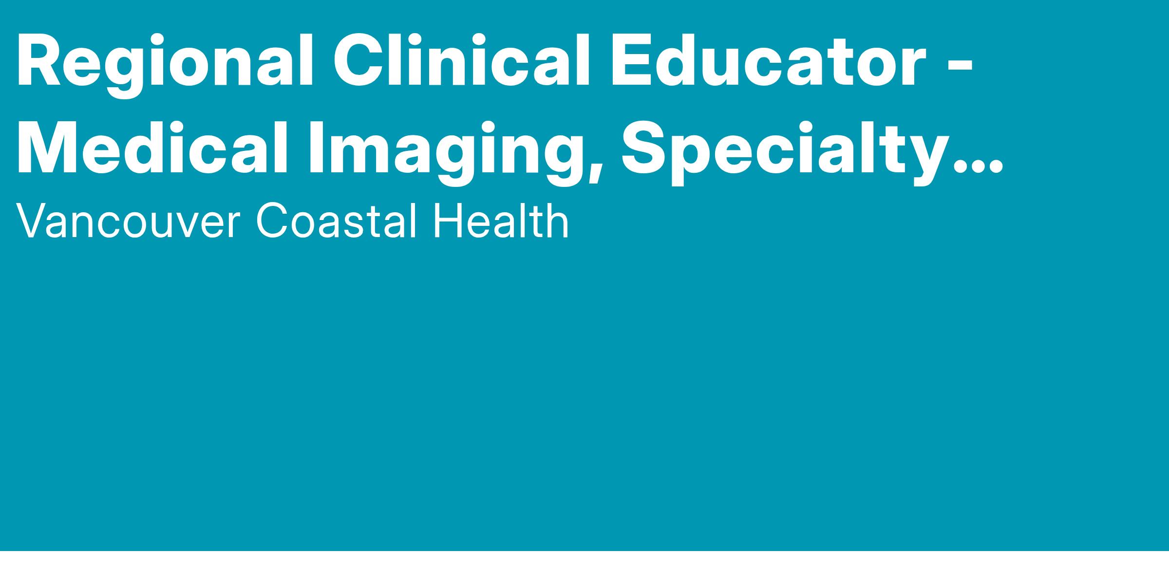 Vancouver Coastal Health is looking for a Regional Clinical Educator to join the Medical Imaging and Speciality Radiology Technology team at Vancouver General Hospital. Apply today to join our team!