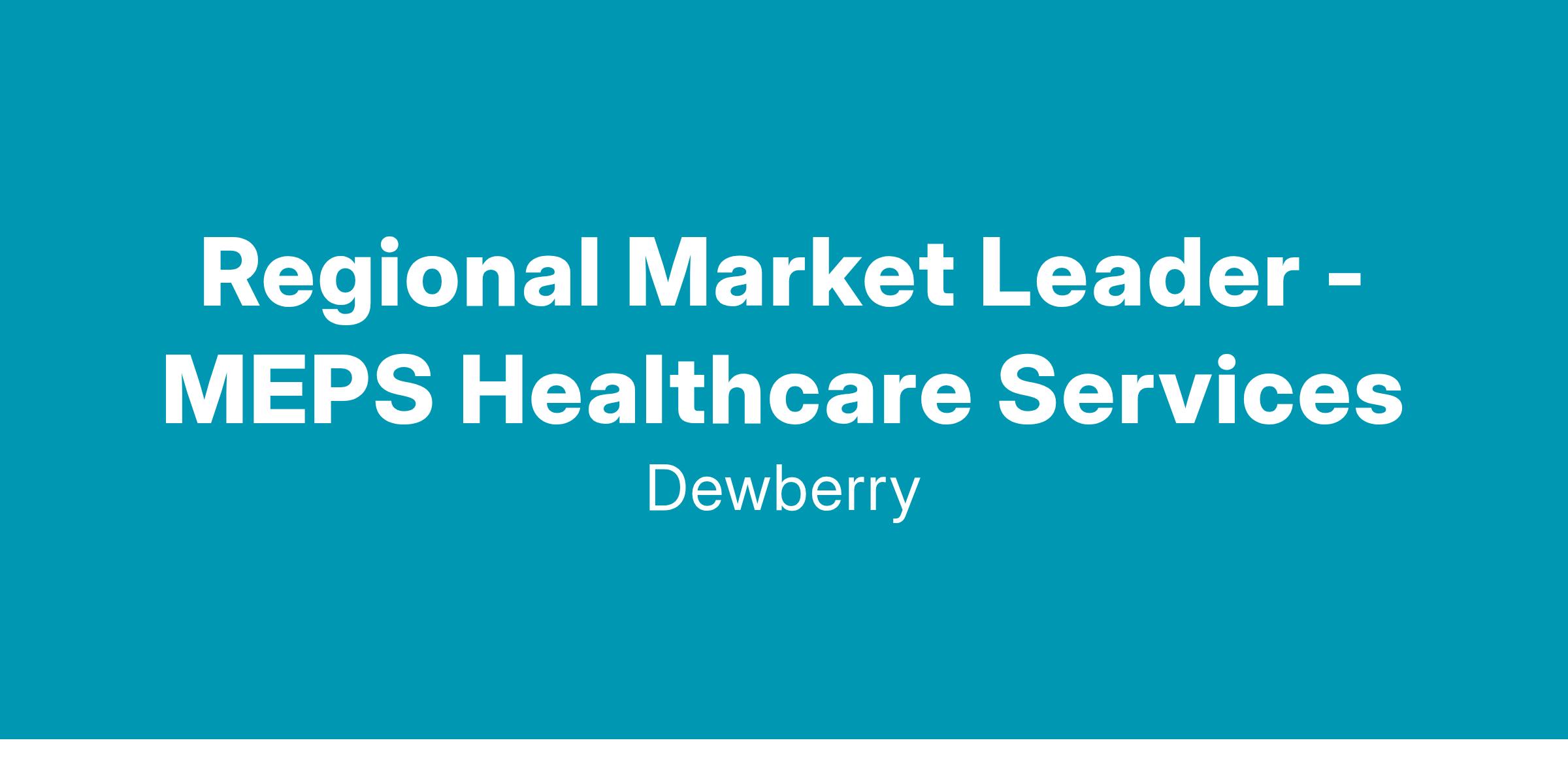 Dewberry is currently seeking a Regional MEPS Healthcare Market Leader to expand our Mid-Atlantic MEPS Healthcare Services. This position is ideally located in our Fairfax, VA headquarters.