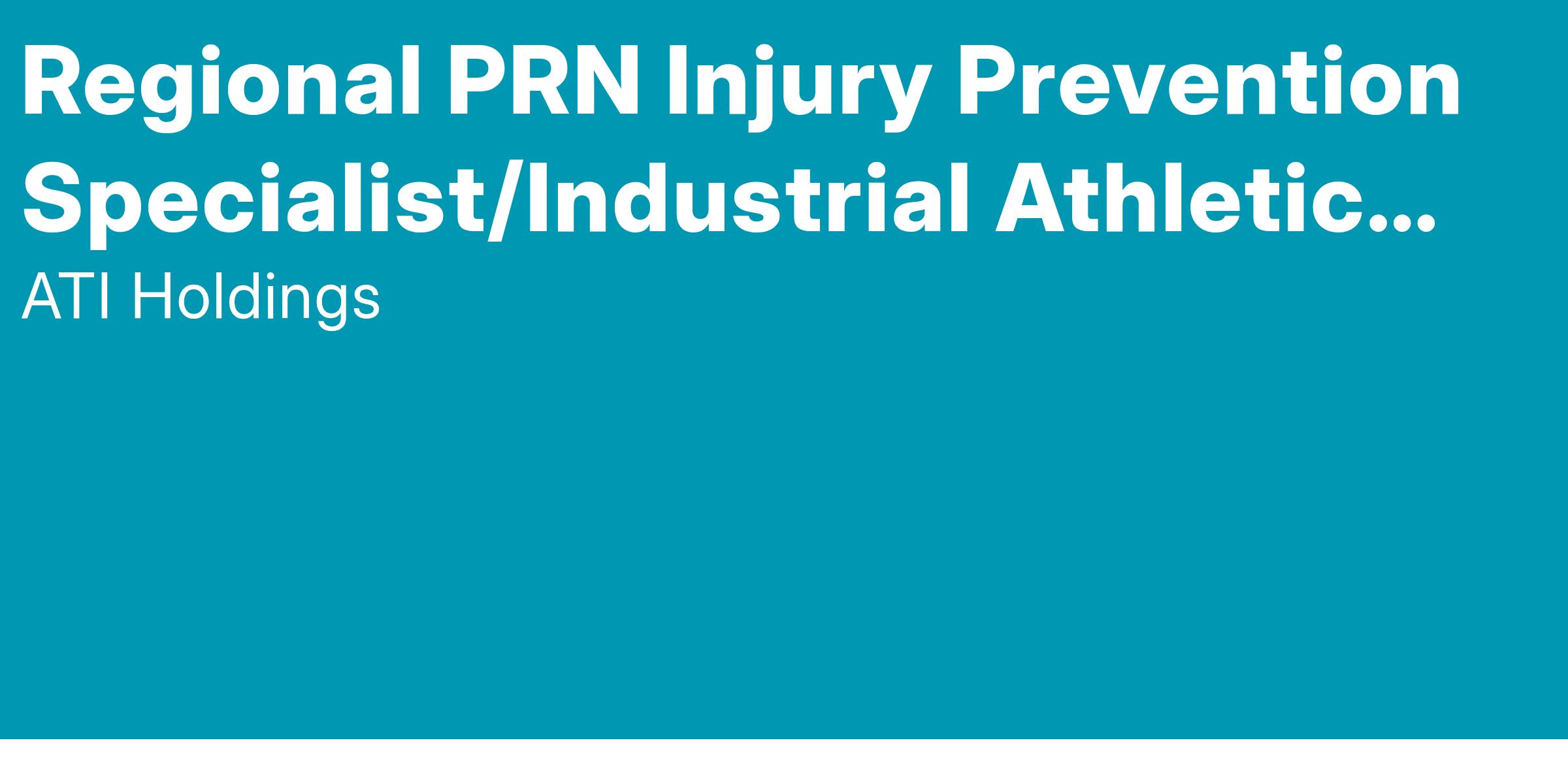 Title: Regional PRN Injury Prevention Specialist/Industrial Athletic Trainer - Floater
