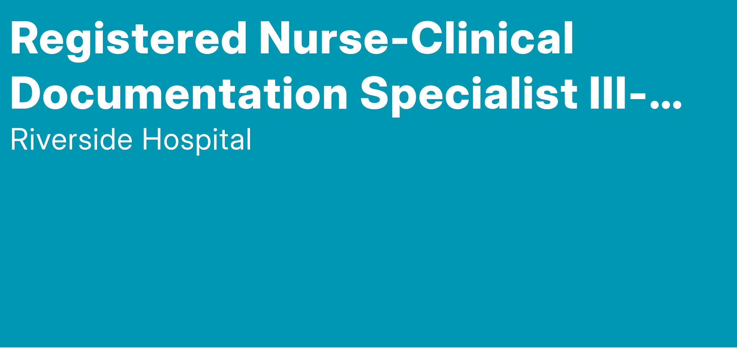 To learn more about being a team member with Riverside Health System visit us at https://www.riversideonline.com/careers.