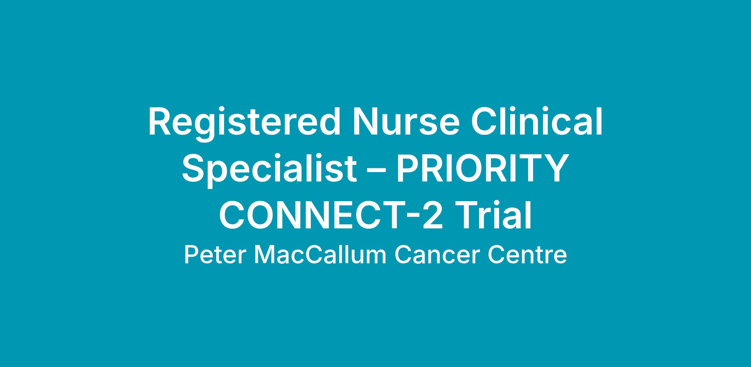 Peter Mac is seeking an experienced and committed Clinical Nurse Specialist to support the implementation of the PRIORITY CONNECT 2 (PC 2) trial within our virtual, multimodal (pre) habilitation hub. This role is central to delivering high quality, evidence based care to patients and their families/carers within a multidisciplinary environment.