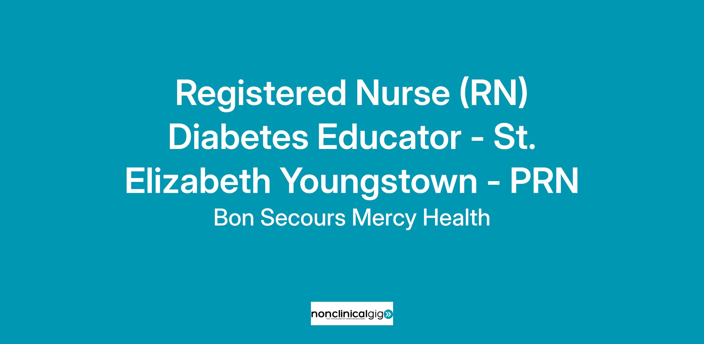 Diabetes Education Clinic - St. Elizabeth - Diabetic EducationIt is our policy to abide by all Federal and State laws, as well as, the requirements of 41 CFR 60-1.4(a), 60-300.5(a) and 60-741.5(a). Accordingly, all applicants will receive consideration for employment without regard to race, color, national origin, religion, sex, sexual orientation, gender identity, age, genetic information, or protected veteran status, and will not be discriminated against on the basis of disability. If you’d like to view a copy of the affirmative action plan or policy statement for Mercy Health– Youngstown, Ohio or Bon Secours – Franklin, Virginia; Petersburg, Virginia; and Emporia, Virginia, which are Affirmative Action and Equal Opportunity Employer, please email recruitment@mercy.com. If you are an individual with a disability and would like to request a reasonable accommodation as part of the employment selection process, please contact The Talent Acquisition Team at recruitment@mercy.com.