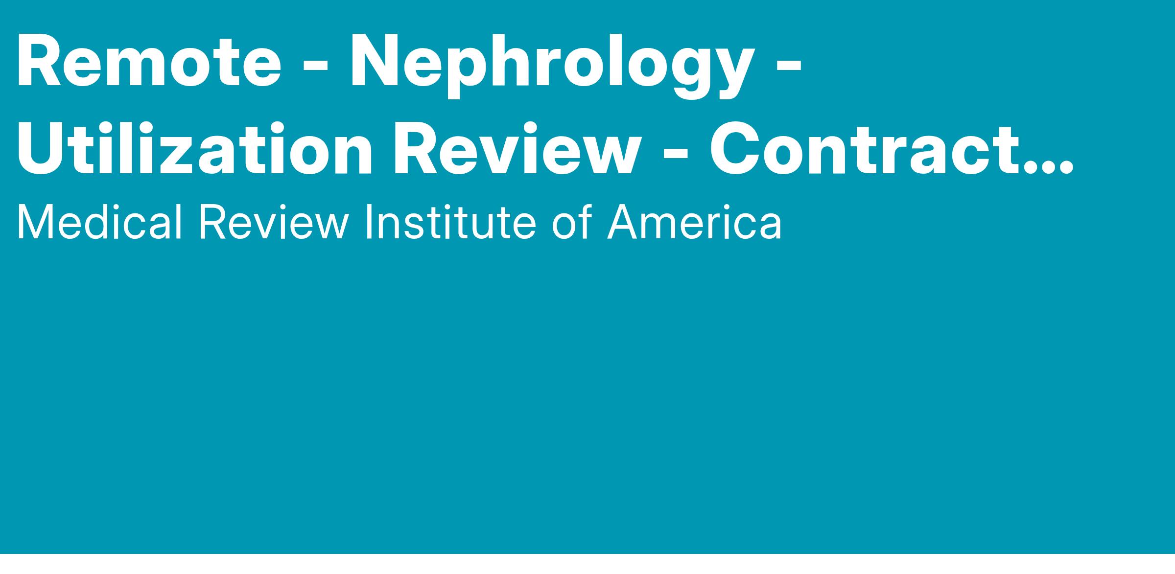 We are seeking Board-Certified physicians in Nephrology to provide expert Utilization Reviews. This is a flexible, remote opportunity requiring just 1-2 hours per week.