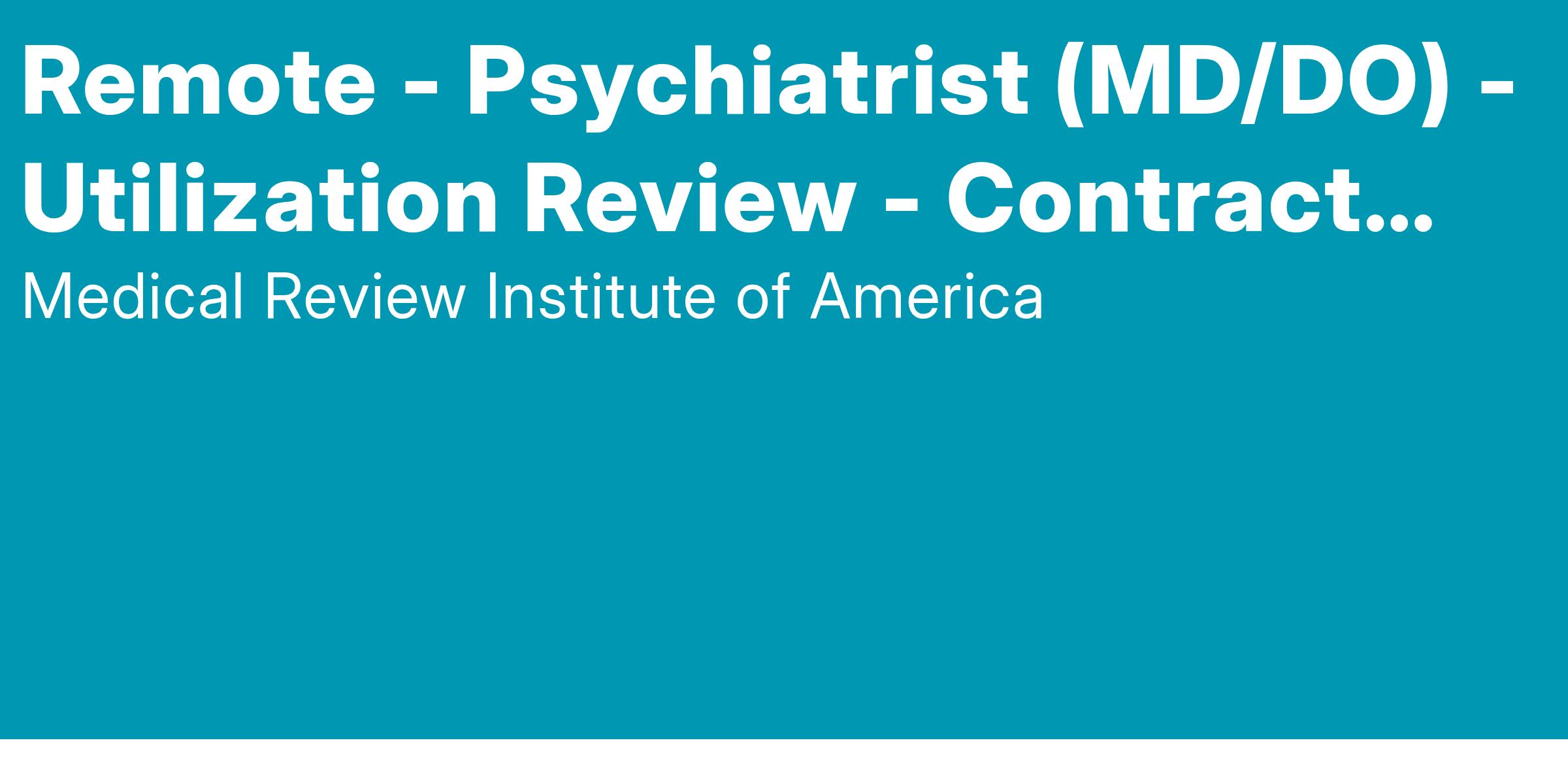 We are currently seeking Board-Certified physicians in Psychiatry to conduct independent Utilization Reviews. This is a flexible, fully remote opportunity requiring just 1–2 hours per week—with no minimum commitment.