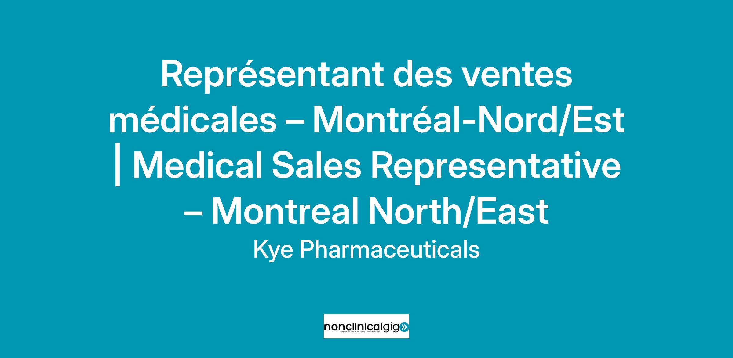 We are looking for a driven and resourceful Medical Sales Representative to join our team to promote Kye products to physicians, pharmacists, and other targeted health care professionals in the north and west regions of Montreal.