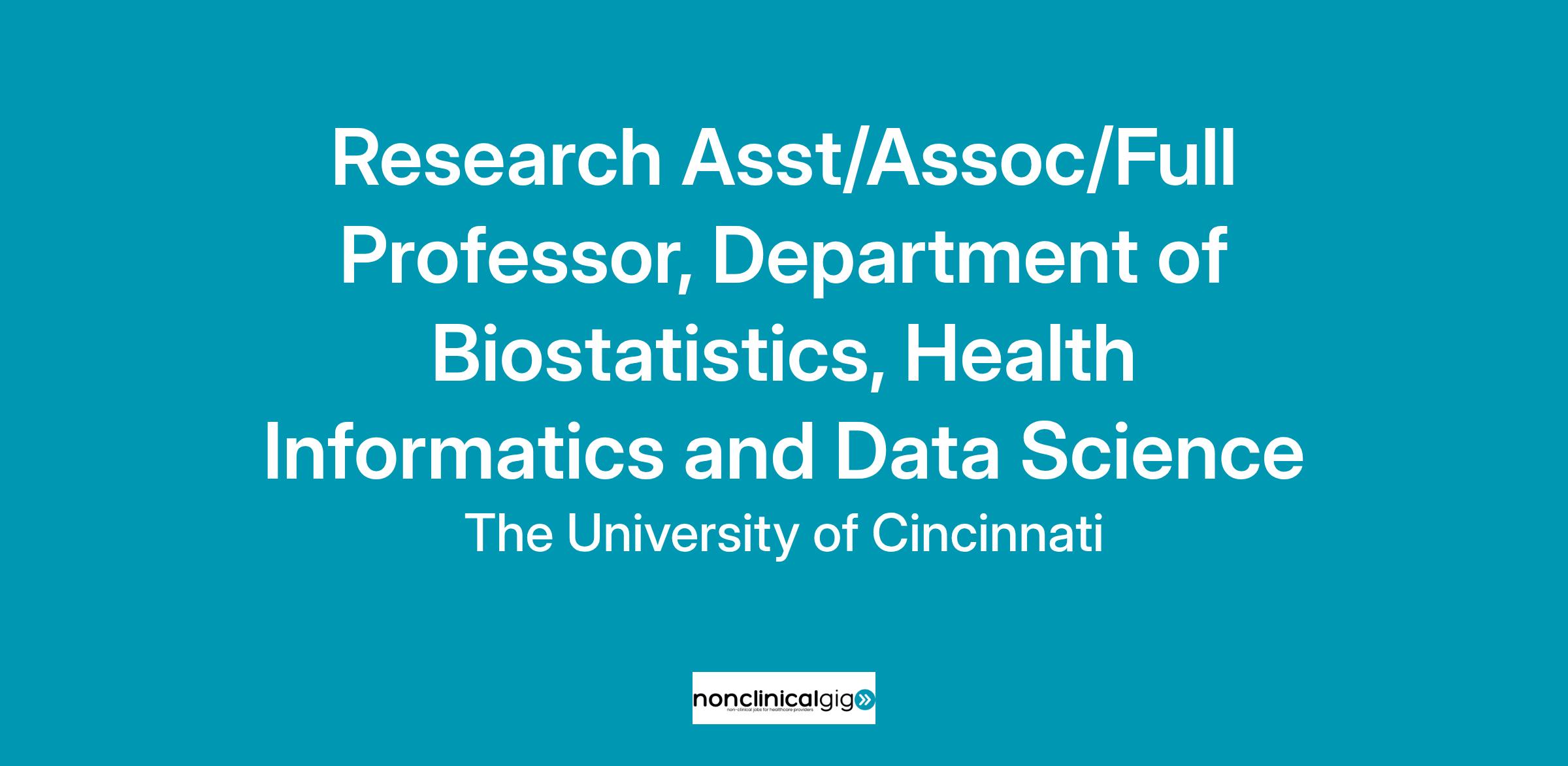 The Department of Biostatistics, Health Informatics and Data Sciences at the University of Cincinnati College of Medicine is the focal point for education, research and team science involving biomedical data sciences and informatics. The department’s 12 full-time faculty are experts in biostatistics, bioinformatics, and clinical informatics, and are the home of the PhD program in Biomedical Informatics, and the PhD program in Biostatistics and Data Sciences. The department and college provide rich collaborative opportunities in basic, translational, and clinical research.
