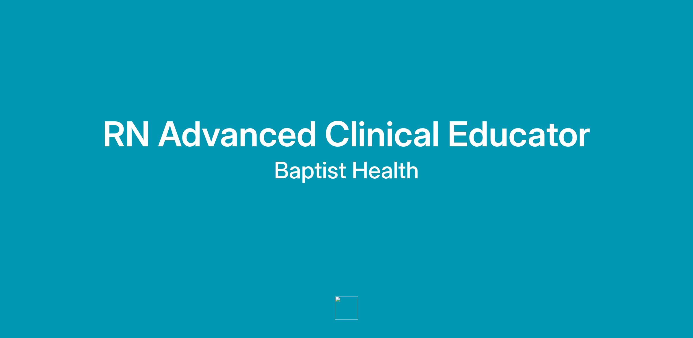 Summary: The RN - Advanced Clinical Educator has demonstrated a commitment to higher Education and is responsible for developing staff throughout Baptist Health by providing expertise as an Educator, Consultant, Facilitator, Change Agent, Leader, and Researcher. The Educator shall be responsible to support the development of new and current staff, foster empowerment and the development of knowledge through the use of evidence-based practice, relationship based care, SMART principles, and principles of adult learning. This individual will utilize the Benner Model to move staff through the contimum from novice to expert. This will occur by facilitating the educational process through assessment, development, planning, implementation, and evaluation of competency, continuing education and leadership development. In addition, the Educator will serve as a role model of professional behavior. This position may have additional duties assigned that are within scope of the role. Education / Experience: MSN required with demonstrated evidence of experience in teaching/education of at least 2 years in the clinical or academic setting; minimum 5 years clinical experience required in the area of served (Critical Care, Med/Surg, Women's Services, Peds or ED) License / Certification: Active RN license required, BLS required, additional certifications (ACLS, PALS, service line specific, etc) may be required depending upon area assigned Knowledge, Skills, and Abilities:Primary Location: