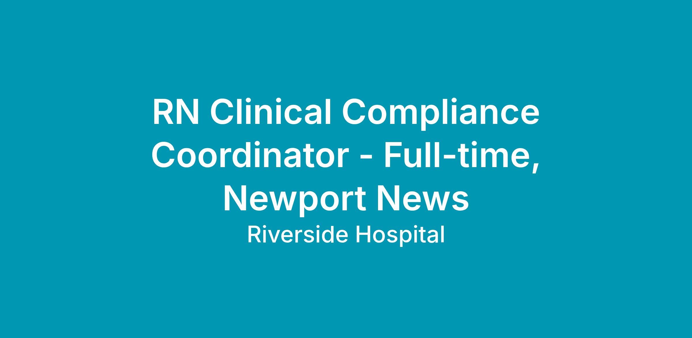 To learn more about being a team member with Riverside Health System visit us at https://www.riversideonline.com/careers.