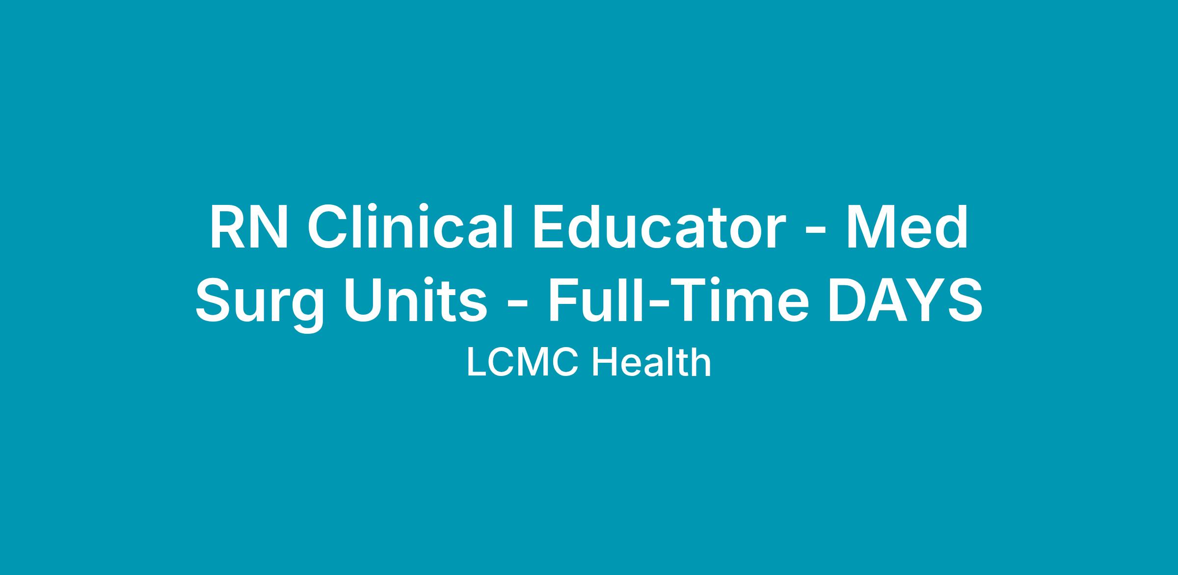 Clinical Educator covers training for all Med Surg Units (7E, 7S, 6E & 5W)