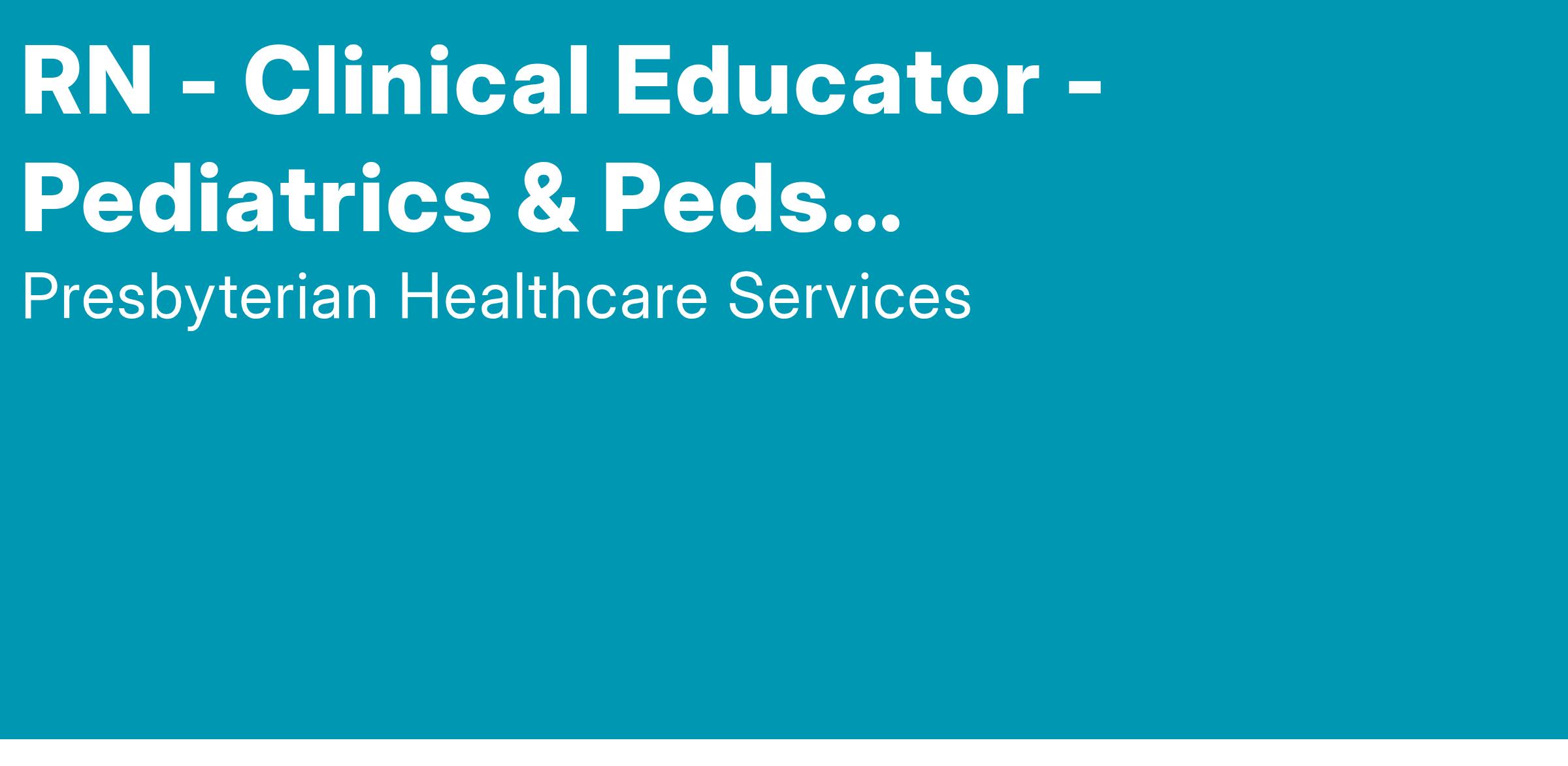 Our Clinical Education team is currently hiring a Nurse Clinical Educator to join the Pediatrics, PICU and Peds Hemotology/Oncology Unit at Presbyterian Hospital.