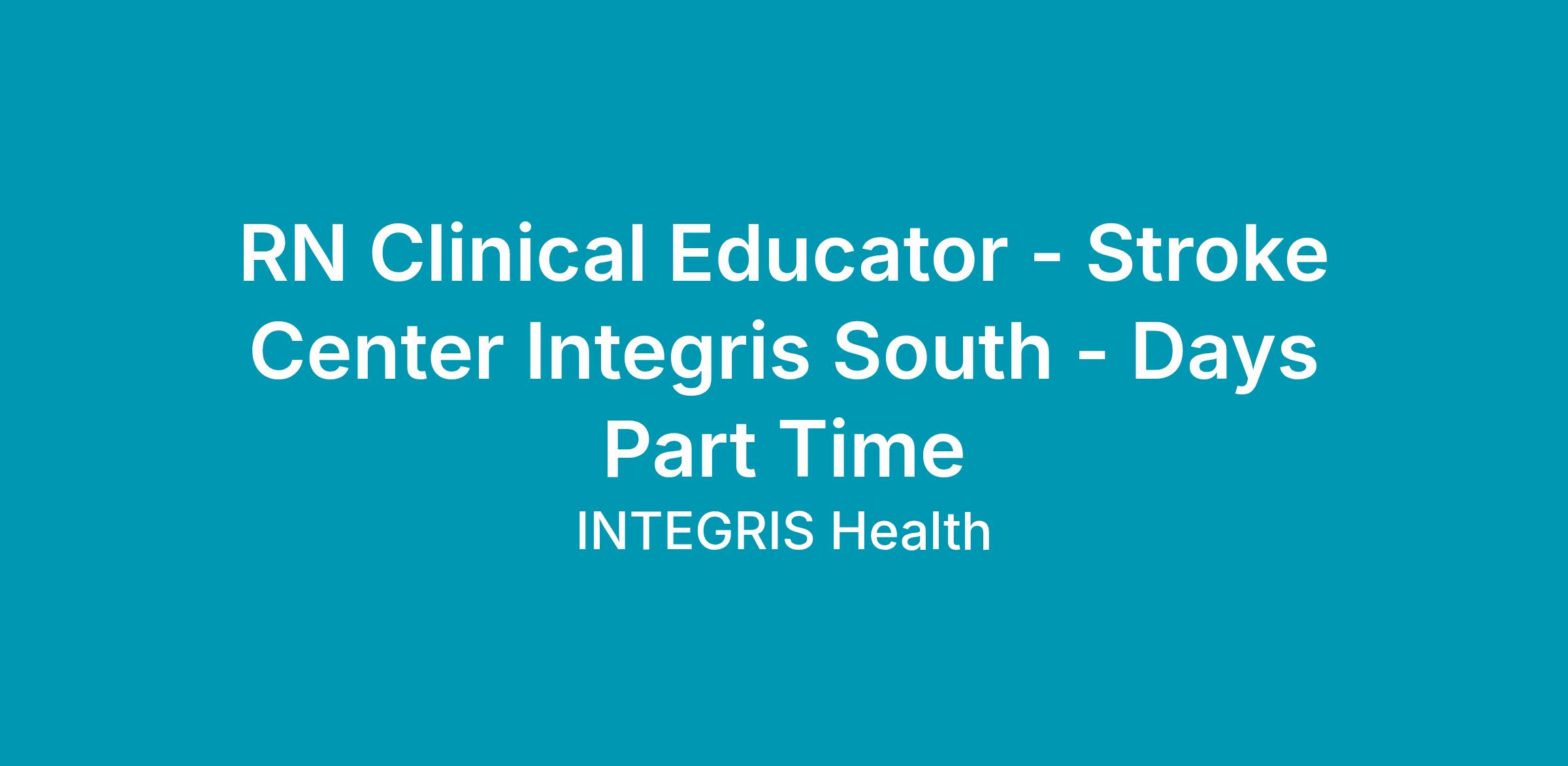 INTEGRIS Health Southwest Medical Center, Oklahoma’s largest not-for-profit health system has a great opportunity for a RN Clinical Educator in Oklahoma City. In this position, you’ll work 7a-7p part time with our Stroke Center team providing exceptional care to those who have entrusted INTEGRIS Health with their healthcare needs. If our mission of partnering with people to live healthier lives speaks to you, apply today and learn more about our recently enhanced benefits package for all eligible caregivers such as, front loaded PTO, 100% INTEGRIS Health paid short term disability, increased retirement match, and paid family leave. We invite you to join us as we strive to be The Most Trusted Partner for Health.