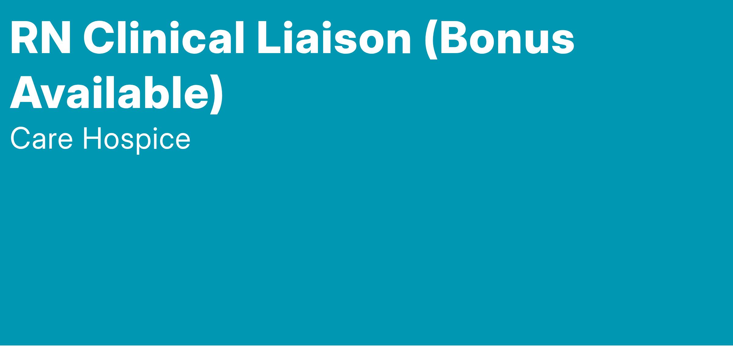 The Clinical Liaison is primarily responsible for hospital and medical facility-based outreach to identify new referral sources and maintain on-going relationships that will increase census and preference for hospice services. Clinical Liaisons use their clinical knowledge, empathetic communication skills, and marketing abilities to initiate one-on-one dialog with referral sources, families, and prospective patients to help explain and educate on hospice services. Our Clinical Liaisons are hospice experts and serve as a resource to their referral sources to ensure extraordinary patient and customer service.