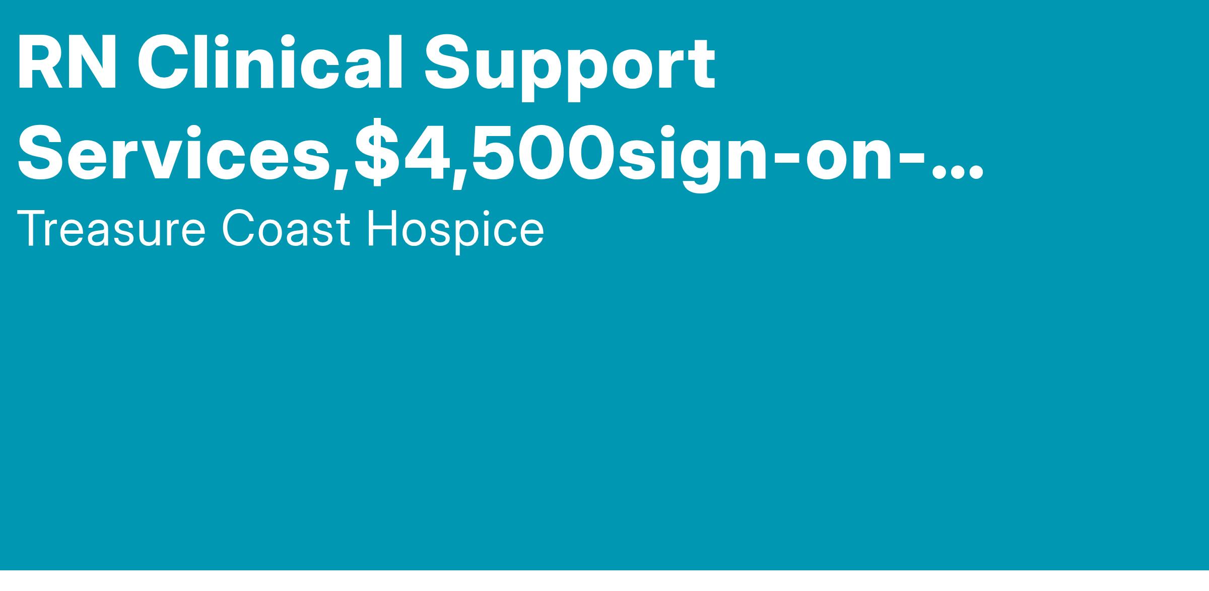 The RN is responsible for the planning and delivery of patient care, providing skilled nursing care and oversight in accordance with Treasure Coast Hospice policies and the Florida Nurse Practice Act, utilizing the nursing process of assessment, planning, intervention, implementation and evaluation. To provide a combination of skilled professional nursing tasks and provide palliative and supportive care to the patient and family unit. Includes all areas of Clinical Support Services coverage; phone triage (call center) and in-person visits (responder), crisis care and provides coverage to the inpatient units as needed and assigned. Provides care in Martin, St Lucie and Okeechobee counties.