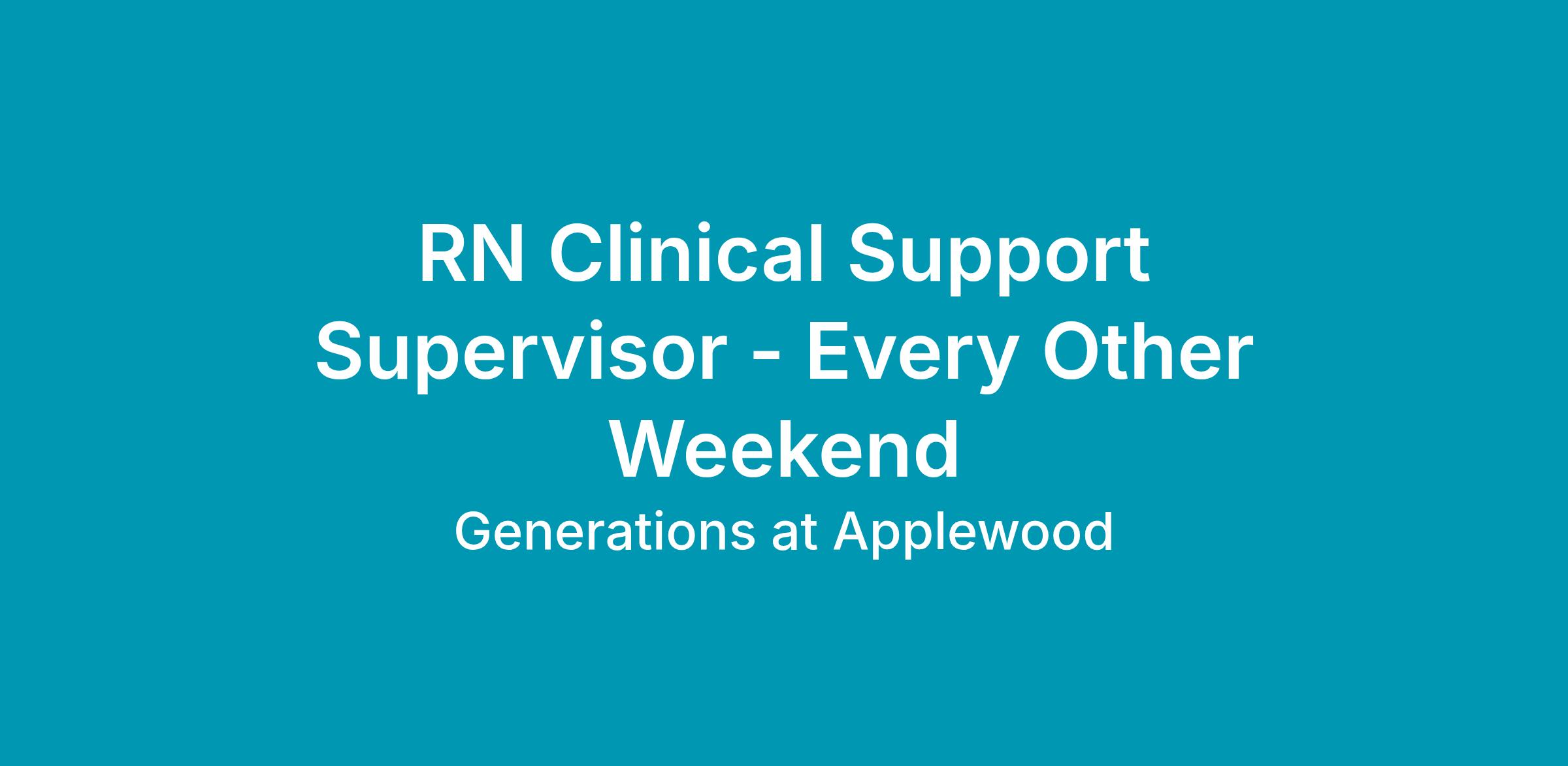 Generations at Applewood Seeks Part-Time Clinical Support Supervisor 11a-7p every other weekend, both Saturday and Sunday. Must be a Registered Nurse AND have experience working and/or supervising in a skilled nursing facility. Additional hours available as a floor nurse.